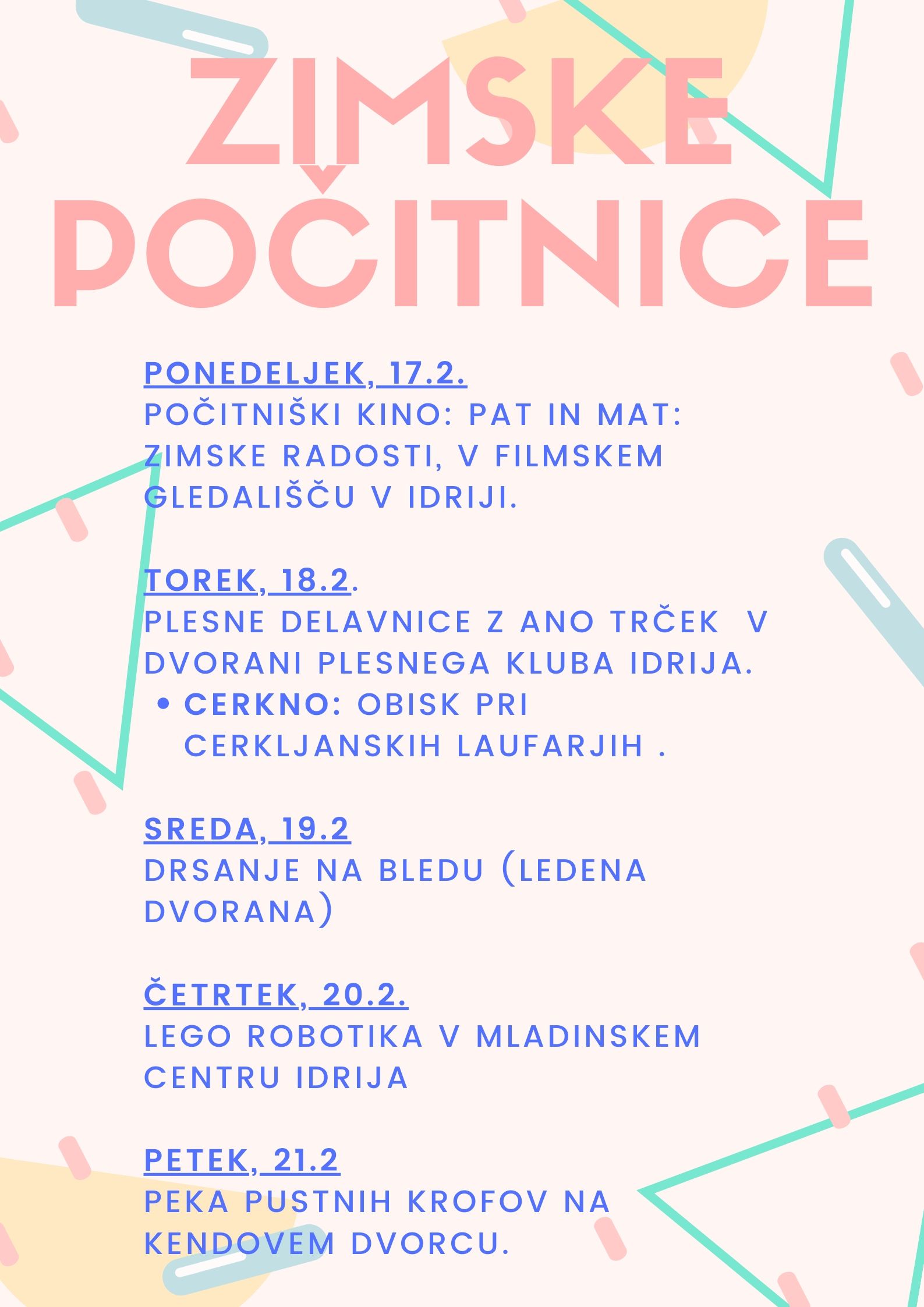 Počitniško dogajanje smo pričeli s filmsko dozo smeha in če že pri nas razmere niso čisto nič zimske, smo si v filmskem gledališču Idrija ogledali risanko Pat in Mat: Zimske radosti in se nasmejali ob zimskih dogodivščinah.