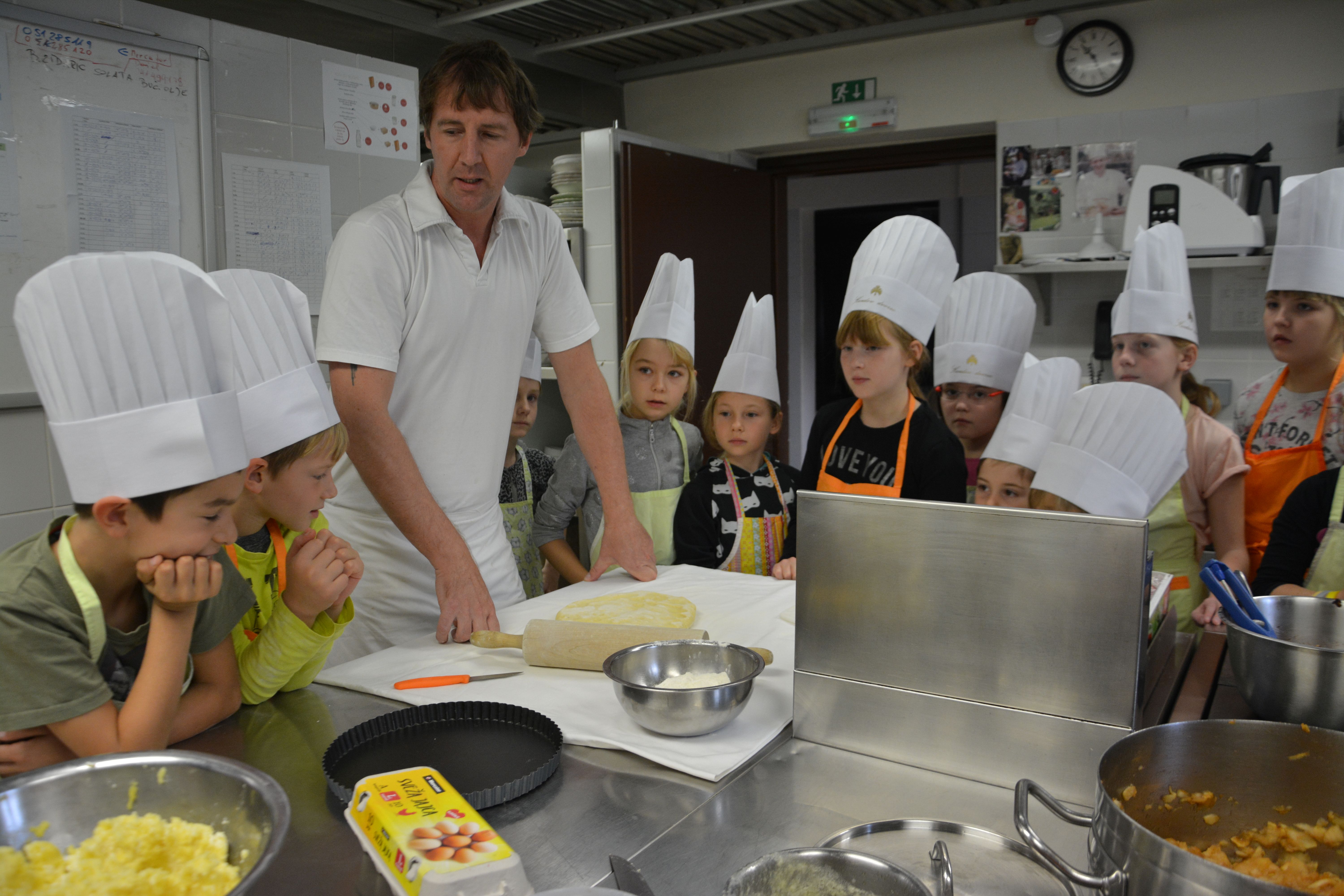 V ponedeljek smo obiskali Kendov dvorec v Spodnji Idriji. Najprej smo se z vodjo Heleno Pregelj Tušar sprehodili po prostorih dvorca in se v vsakem za trenutek ustavili, se podučili o zgodovini stavbe in družine Kenda, ki je tam nekoč živela. Naš zadnji in glavni prostor, ki smo ga obiskali je bila kuhinja, kjer nas je že čakal kuhar Klavdij Pirih. Klavdij in Helena sta nam nadela obvezno kuharsko opremo – klobuk in predpasnik in naša kuharska dogodivščina se je začela. Zamesili smo testo za jabolčno pito in testo za knedeljčke ter pripravili oba potrebna nadeva. Nadev iz suhega sadja za knedeljčke in jabolčni nadev za pito. Naše pridne rokice so hitro postorile vse potrebno in že je bila pita v pečici, knedeljčki pa v vreli vodi. Pripravili smo pribor in že smo se sladkali s slastnimi dobrotami. Na koncu smo še pospravili posodo in se zadovoljni s polnimi trebuščki odpravili domov.