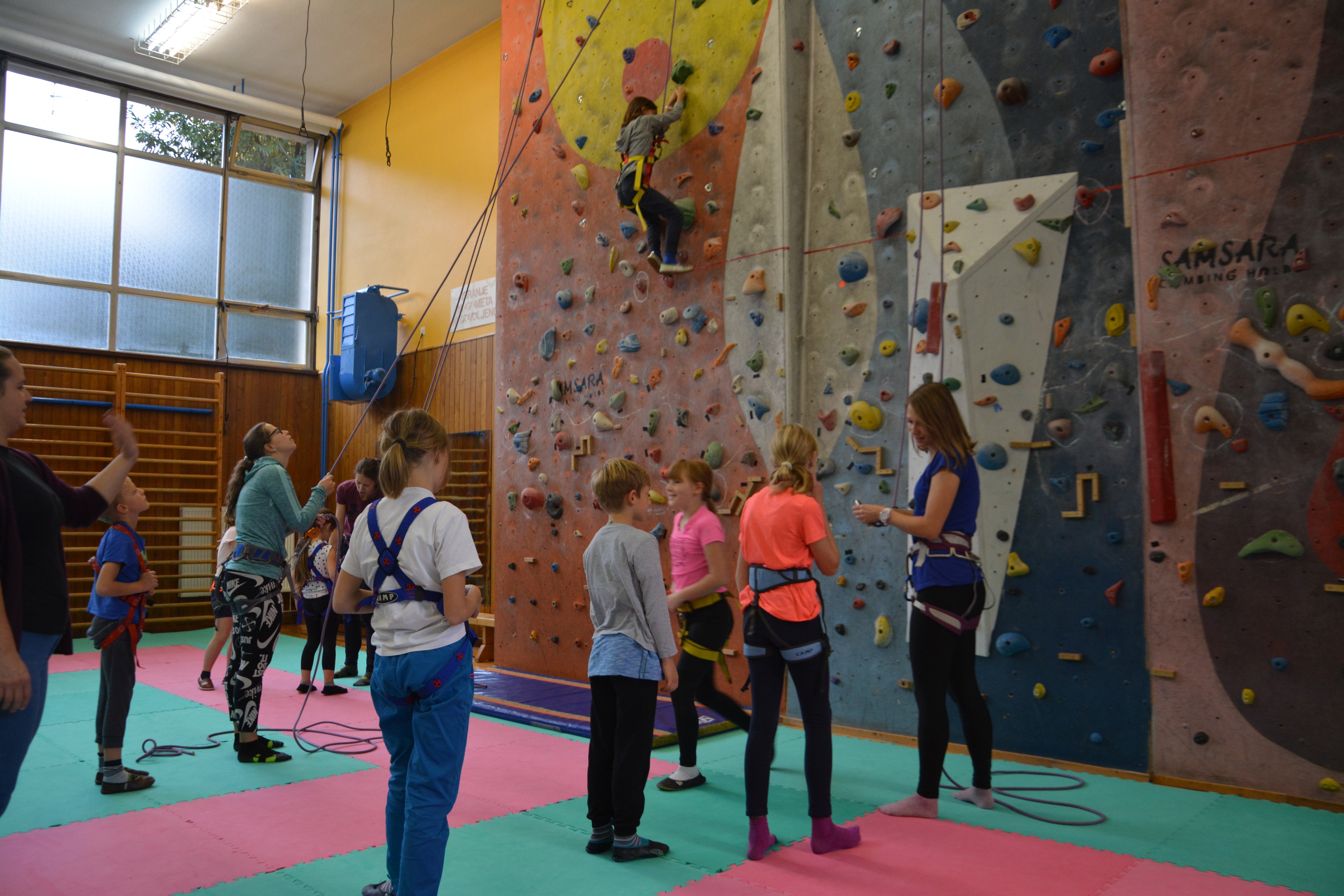 Počitniški torek je bil športno obarvan in namenjen plezanju. V športnem centru v Idriji smo se zbrali v dveh skupinah. Najprej smo se dobro ogreli, razmigali vse sklepe in že je bil čas za plezanje. Na nižji plezalni steni smo najprej iskali kovanček, nato pa smo opremljeni s pravo plezalno opremo zagrizli v visoko plezalno steno. Na voljo smo imeli tri različne smeri. Za varno in kakovostno izvedbo plezanja se zahvaljujemo Janji Grošelj, Simoni Bevk, Moniki Lapajne in Petri Likar.