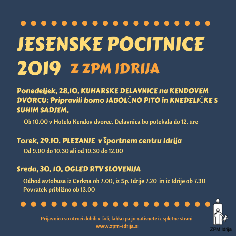 Obveščamo vas, da so za jesenske počitnice zasedene vse razpisane aktivnosti.