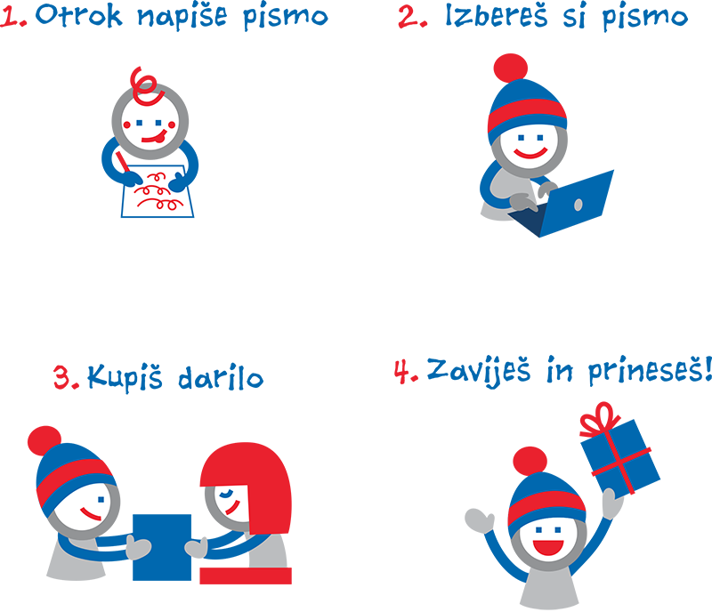 Na spletni strani akcije že čakajo pisma otrok, med katerimi si lahko izberete svojega in tudi vi nekomu polepšate praznike. Pripravljena darila boste lahko oddali na določenih zbirnih mestih, jih poslali po pošti ali jih pustili pri nas, kjer jih bodo prevzeli naši prostovoljci in jih dostavili v Ljubljano.