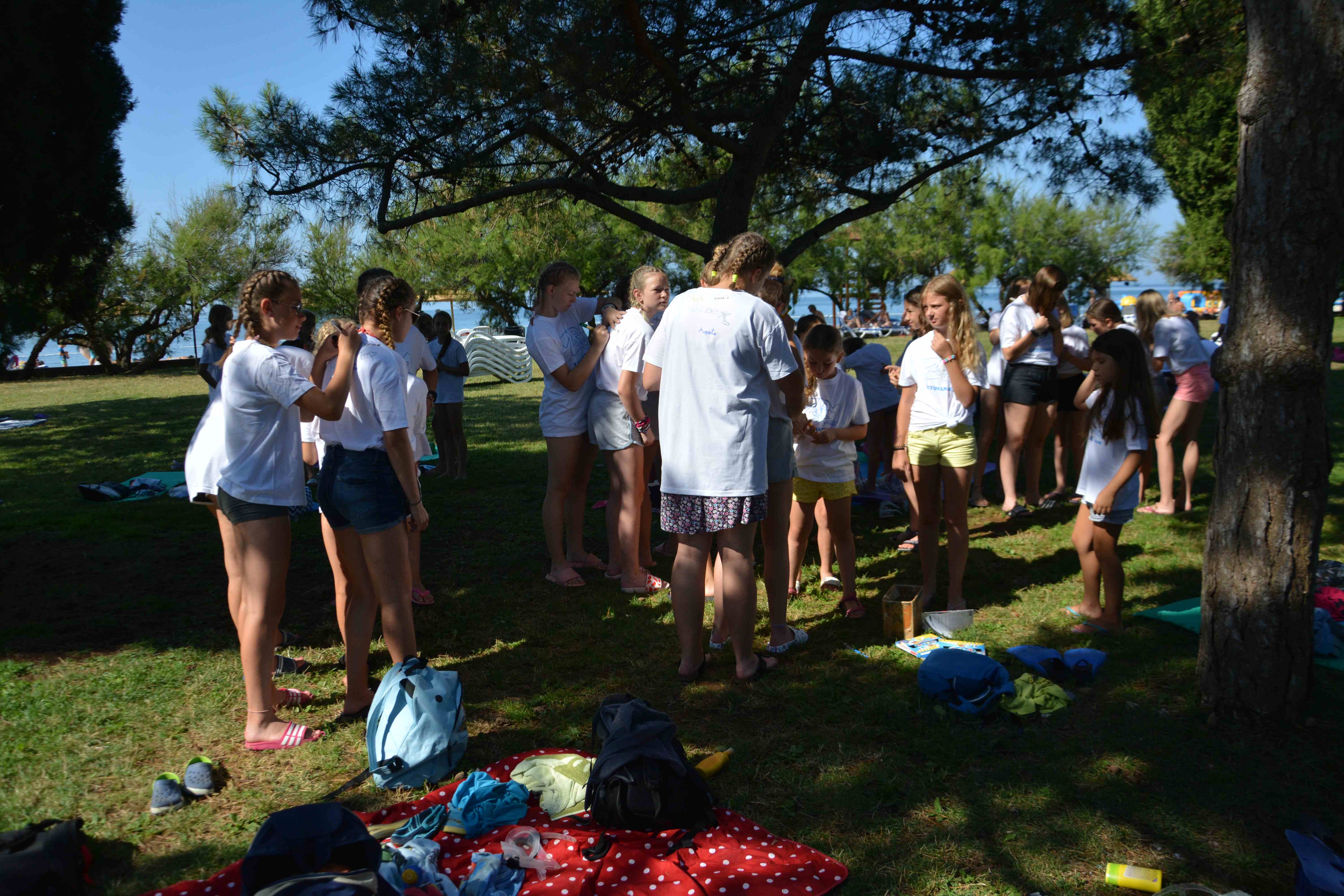 Na plaži smo najprej razdelili majice in naredili skupinsko fotografijo, potem smo se na majice še podpisovali. Šele nato je sledilo kopanje in ostale igre na plaži.