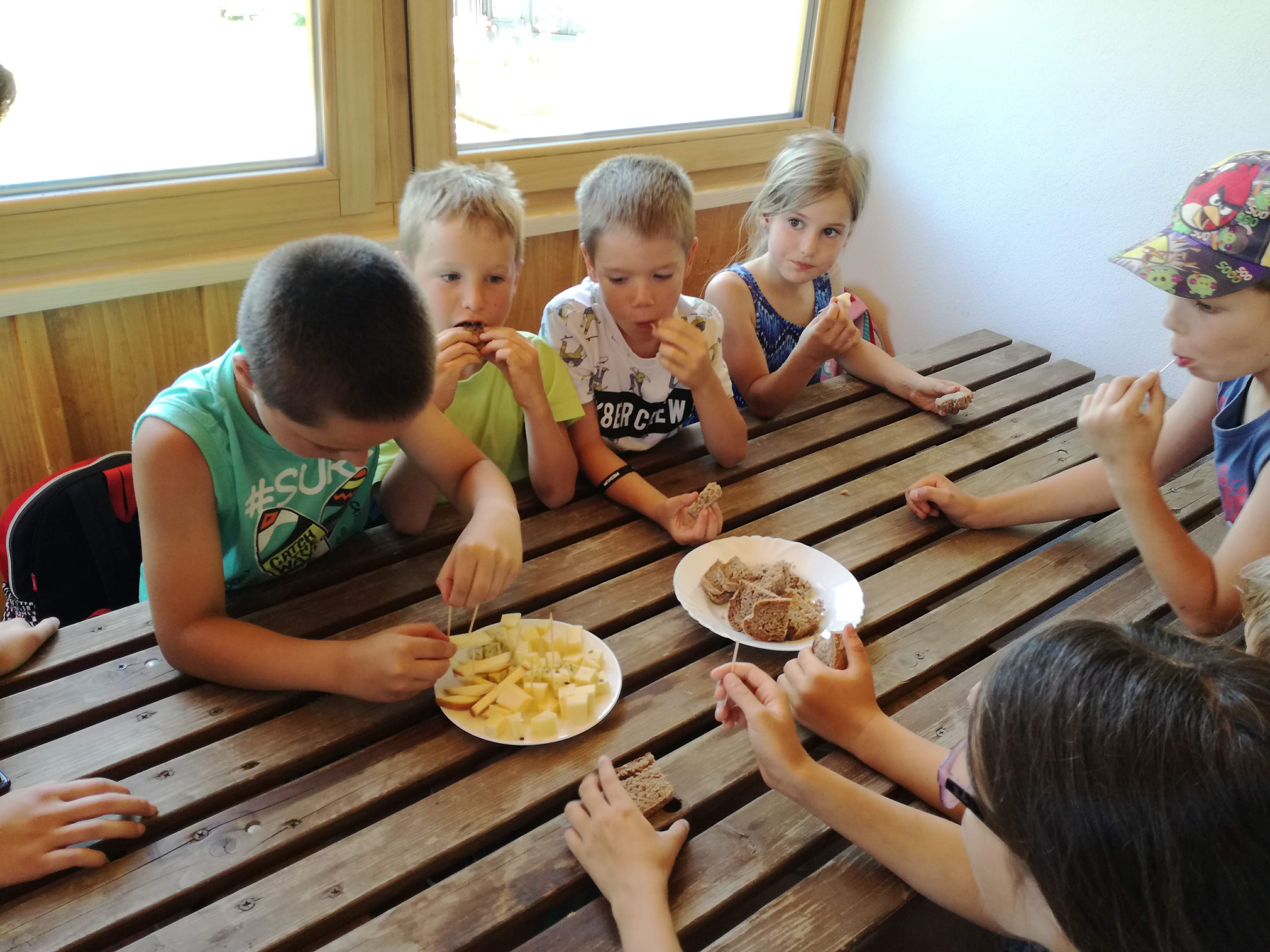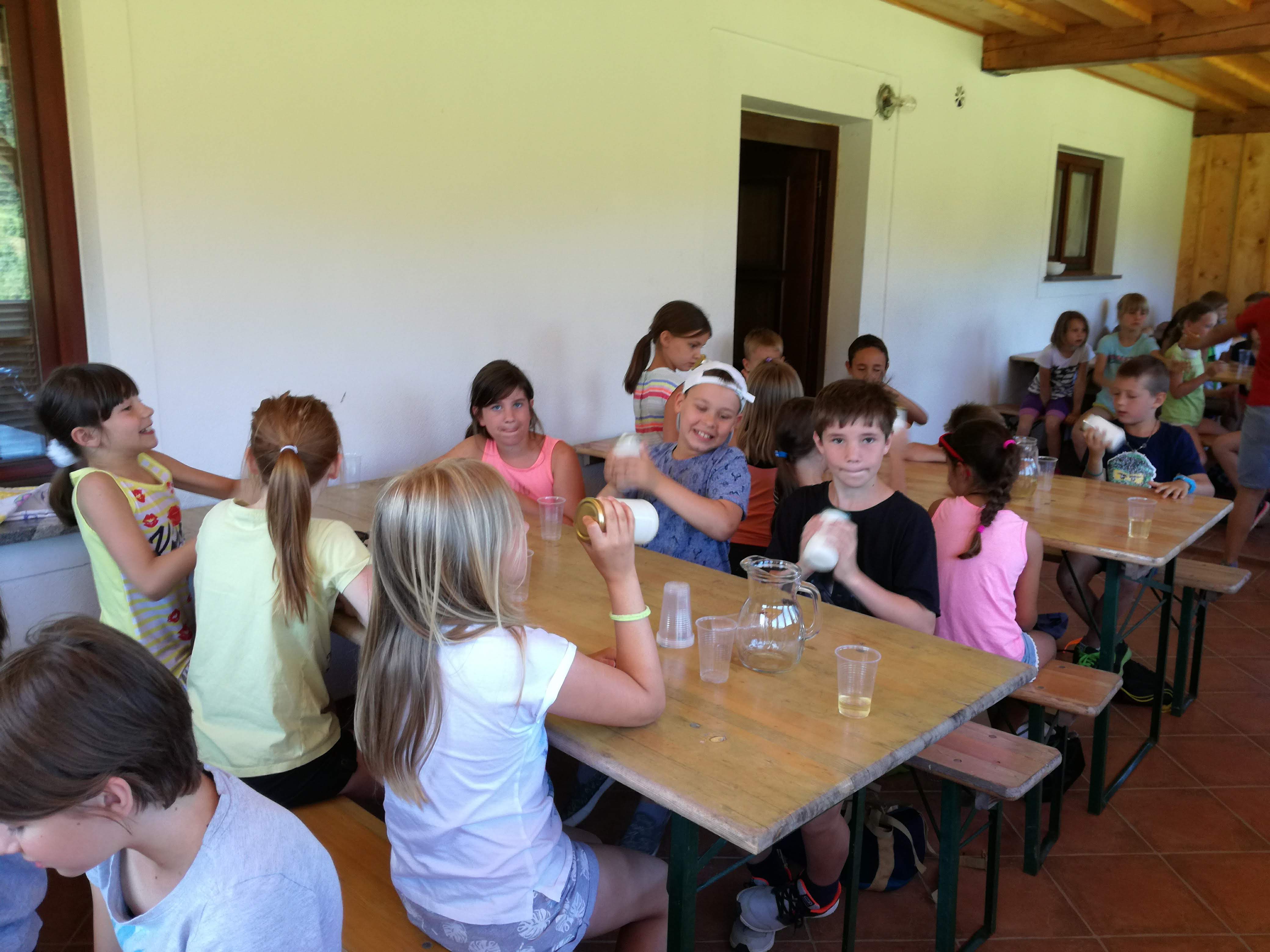 V sklopu počitnikarije smo obiskali kmetijo Na Ravan, kjer smo preživeli super zanimiv ponedeljek. Ogledali smo si njihove živali, kmetijsko mehanizacijo, sirarno, SAMI izdelali maslo in si zaslužili zelo okusno malico. Okrepčani smo se nato pomerili v napeti igri: iskanje orehov v kupu sena. Koliko veselja!