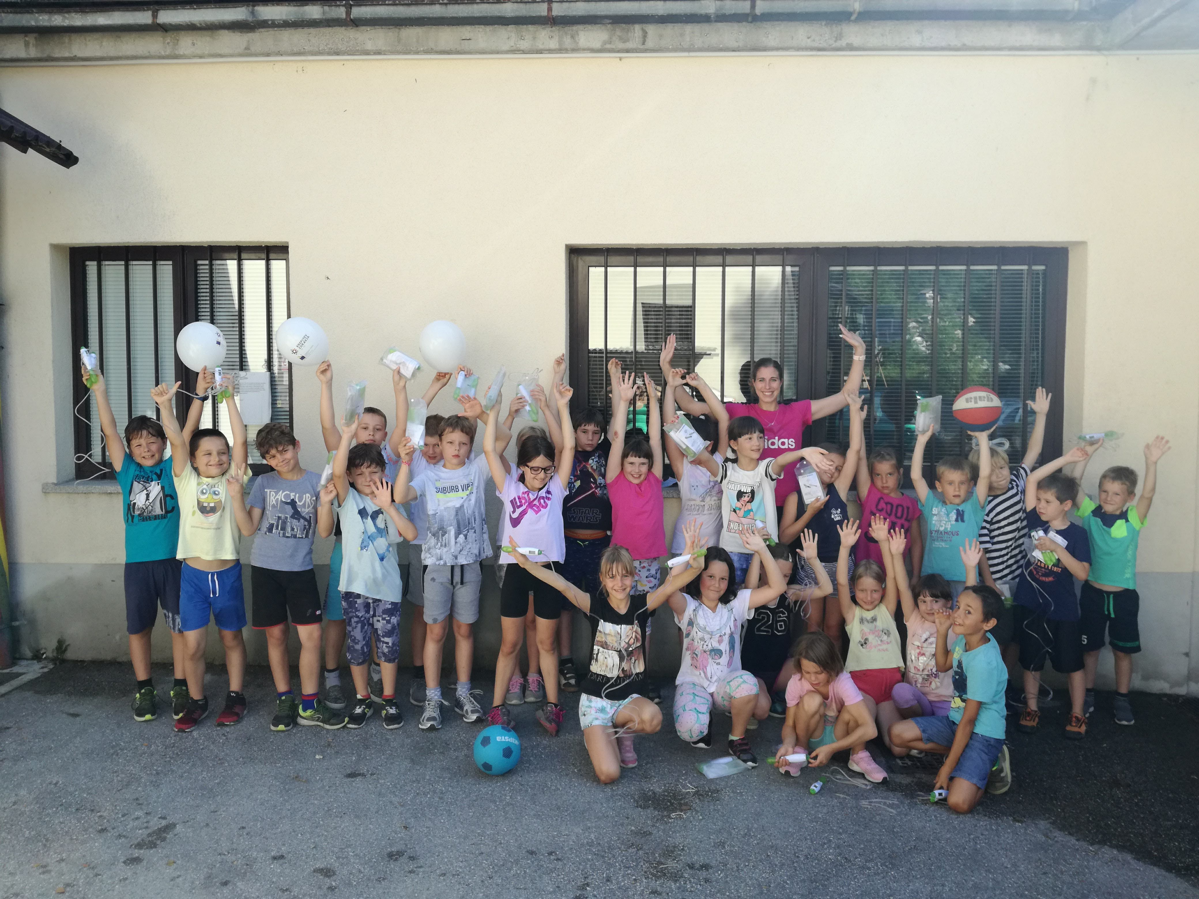 Medtem smo se v počitniškem varstvu pomerili v zabavnih štafetnih igrah, ki nam jih je pripravila kineziologinja Neca iz Centra za krepitev zdravja Idrija. Tako smo pridno sodelovali, da smo si zaslužili super nagrade: elektronske kolebnice, ki štejejo skoke. Naslednji dve uri smo torej zagreto skakali, skakali in skakali… in gledali, komu se na ekrančku izpisuje najvišja številka.