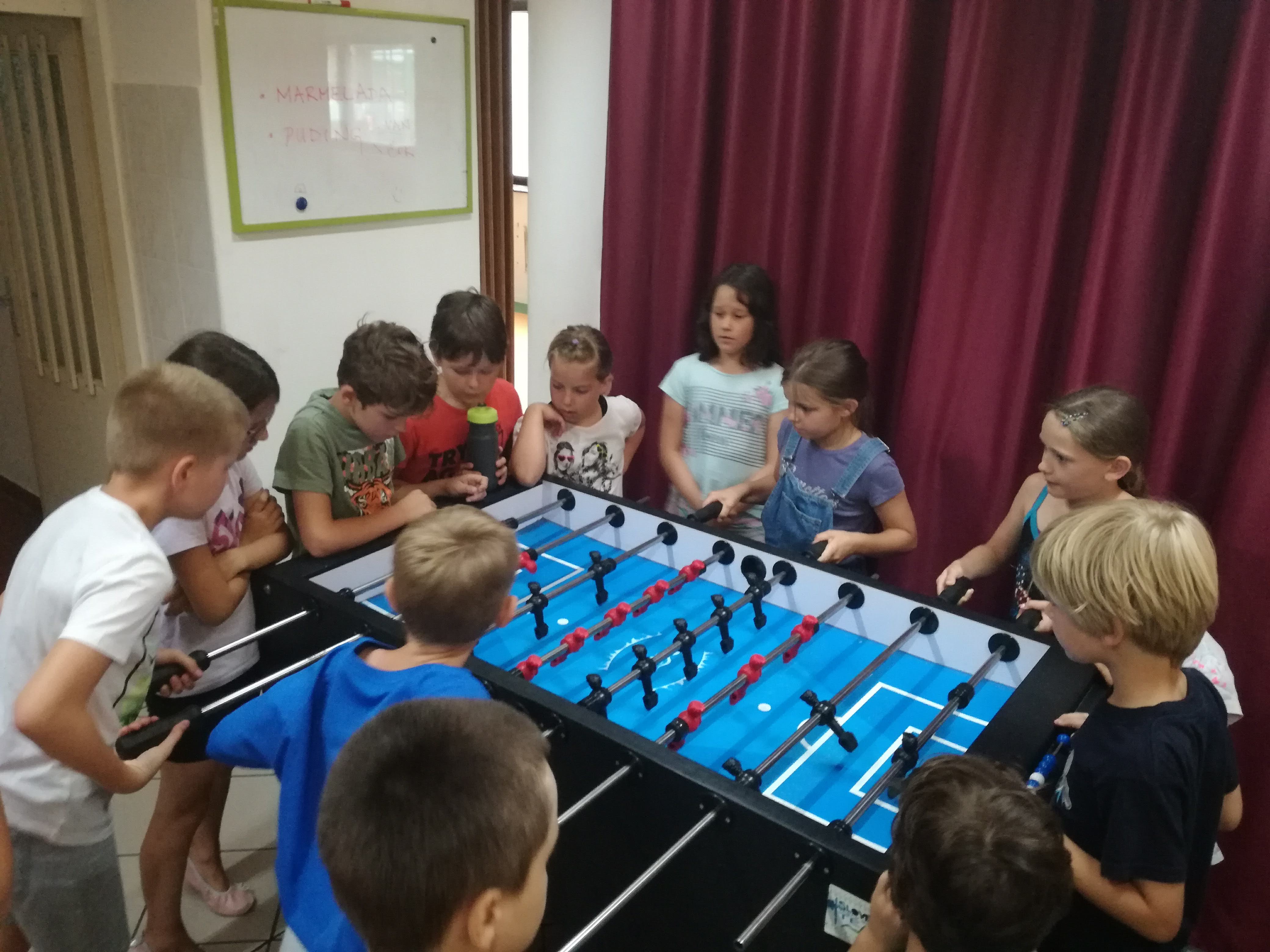 Četrtkov dan pa je bil rezerviran za metanje na koš, lakiranje nohtov, praznovanje rojstnega dne, ogled risanke in težko pričakovan turnir v namiznem nogometu. Otroci so vzgojiteljice hitro izločili iz boja za medalje in najboljši so se uvrstili v petkovo finale.