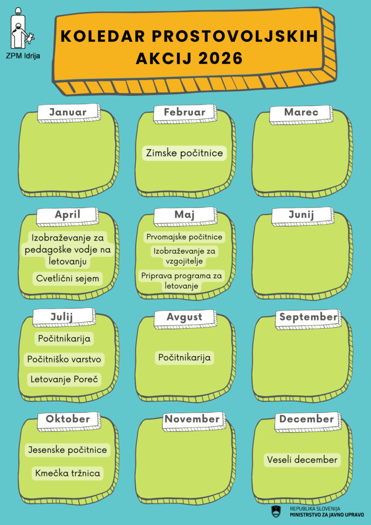Spodaj preverite koledar planiranih prostovoljskih akcij in se pridružite prostovoljskim aktivnostim v letu 2026. Veseli bomo vaše pomoči! 🙌