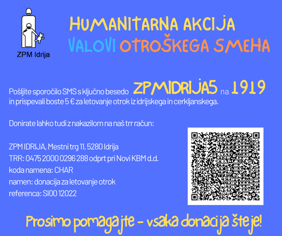 Iz prejetih prijav na letovanje, ki smo jih začeli zbirati po prvomajskih počitnicah je jasno, da želijo z nami letovati številni otroci iz socialno ogroženih družin, ki bodo letovali popolnoma brezplačno. VALOVI OTROŠKEGA SMEHA je akcija s katero si v Zvezi prijateljev mladine Idrija prizadevamo zagotoviti subvencionirano ceno počitnic na morju in vsaj teden brezskrbnih počitnic omogočiti vsem otrokom, ne glede na njihovo družinsko situacijo.