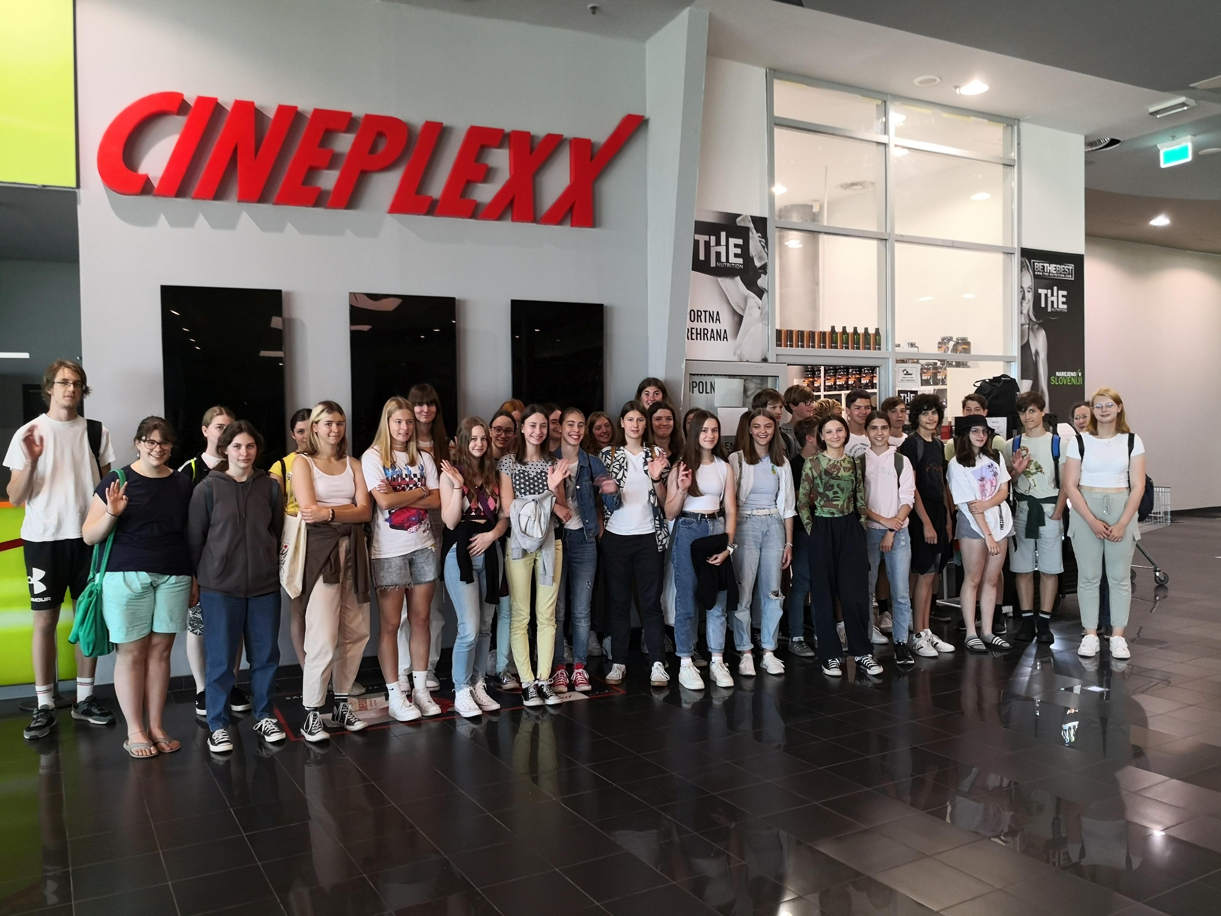 Po poučnem utrinku izleta smo odšli do Cineplexxa. Si v vročem dnevu v senci privoščili malico, nato pa zagrizli še v zabavni del dneva – v nov slovenski mladinski film Vesolje med nami. Nekatere so zmotili “čudni” angleški inserti slovenskih igralcev, sicer pa je povsem simpatična stvaritev domačih avtorjev.