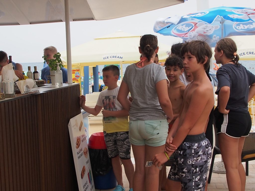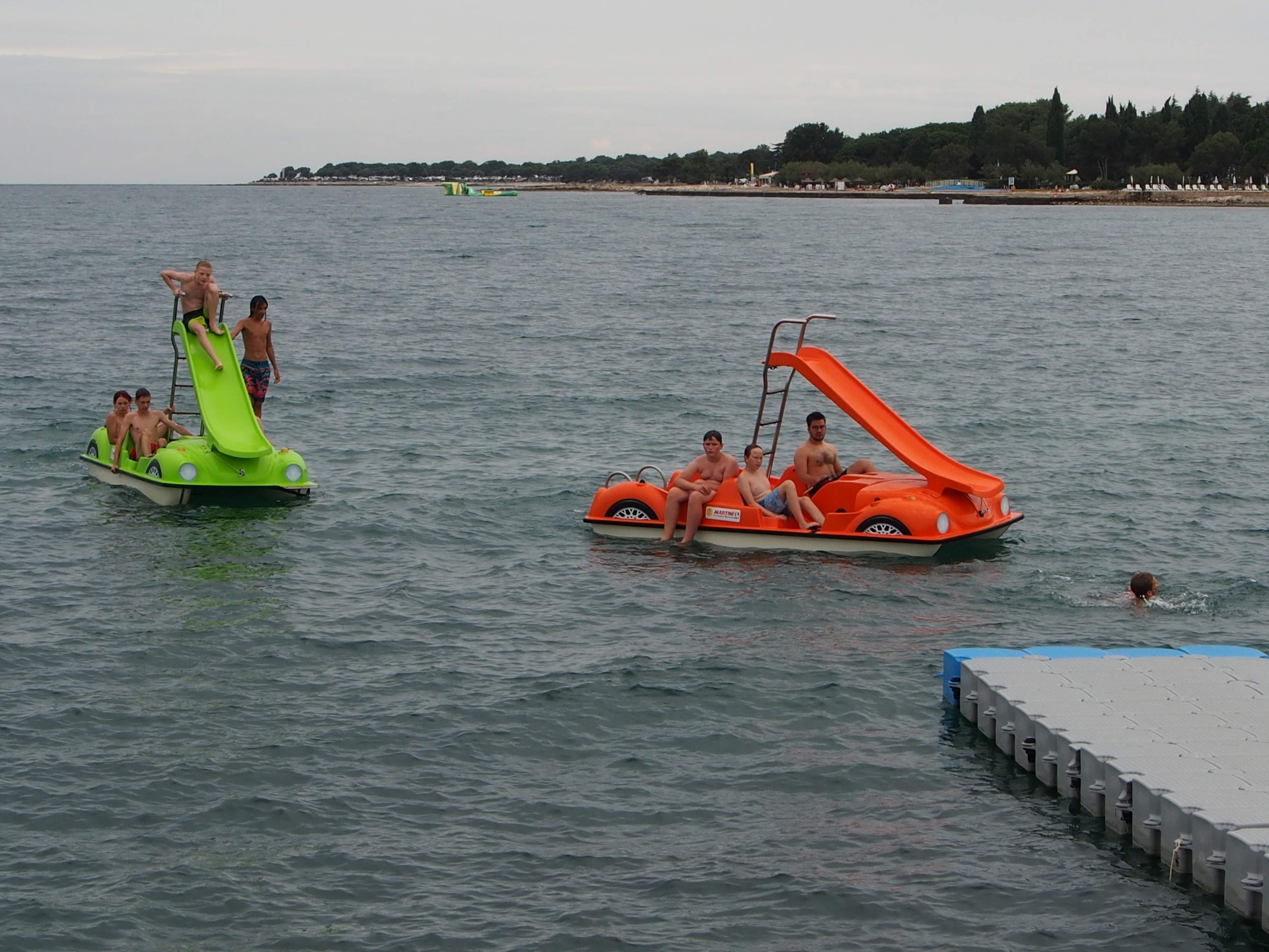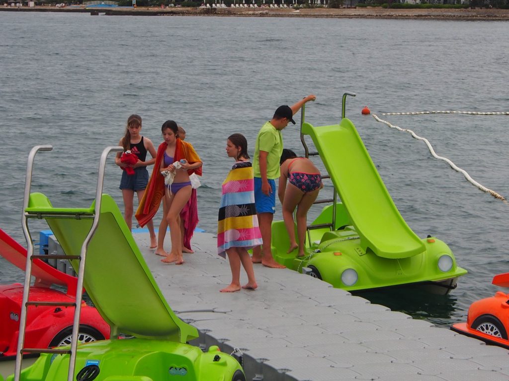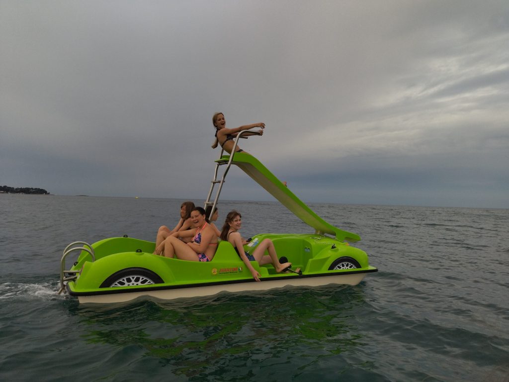 Prebudili smo se v nekoliko bolj hladno jutro ampak na našo srečo brez dežja. Komaj smo čakali, da pozajtrkujemo in se odpravimo na plažo. Sob tokrat nismo podrobno pospravili zjutraj, saj je ocenjevanje potekalo šele popoldan. Namreč zjutraj se nam je mudilo, ker smo bili dogovorjeni, da gremo na napihljiva vodna igrala in na pedoline. Zaradi varnosti smo se razdelili v manjše skupine, si nadeli jopiče in se podali zabavi na proti. Igrala so zahtevna, zato so se naši vzgojitelji dobro natelovadili, ko so otroke vleki iz vode nazaj na igrala. Najmlajši in najstarejši otroci pa so namesto vodih igral raje izbrali pedoline.