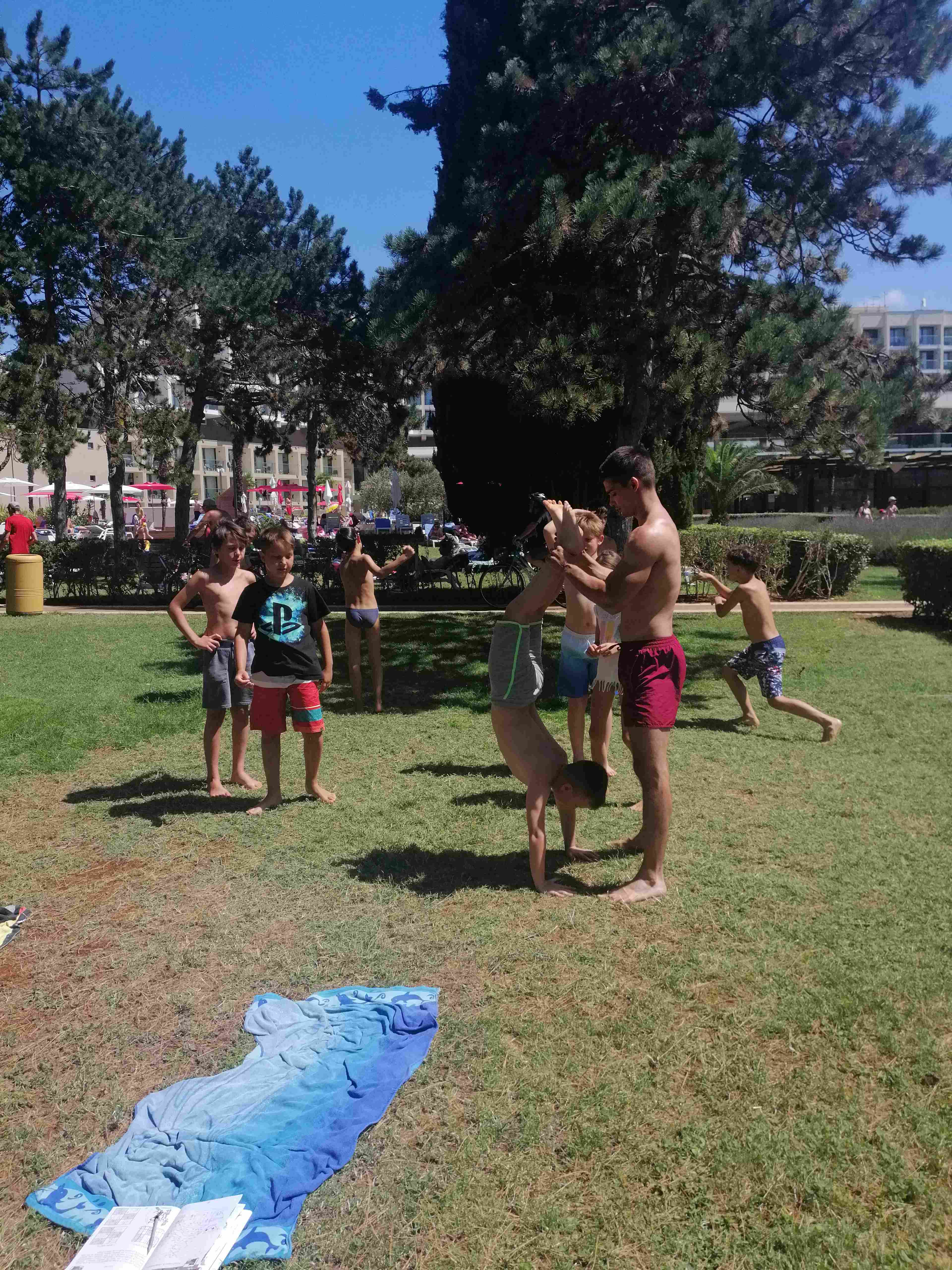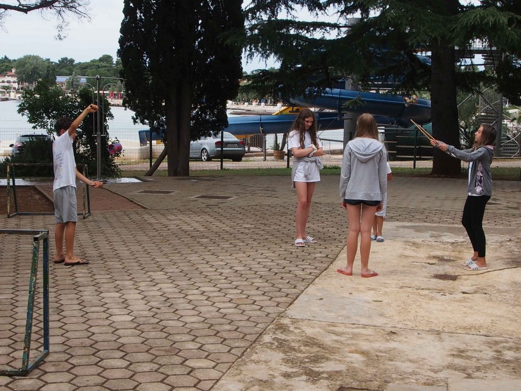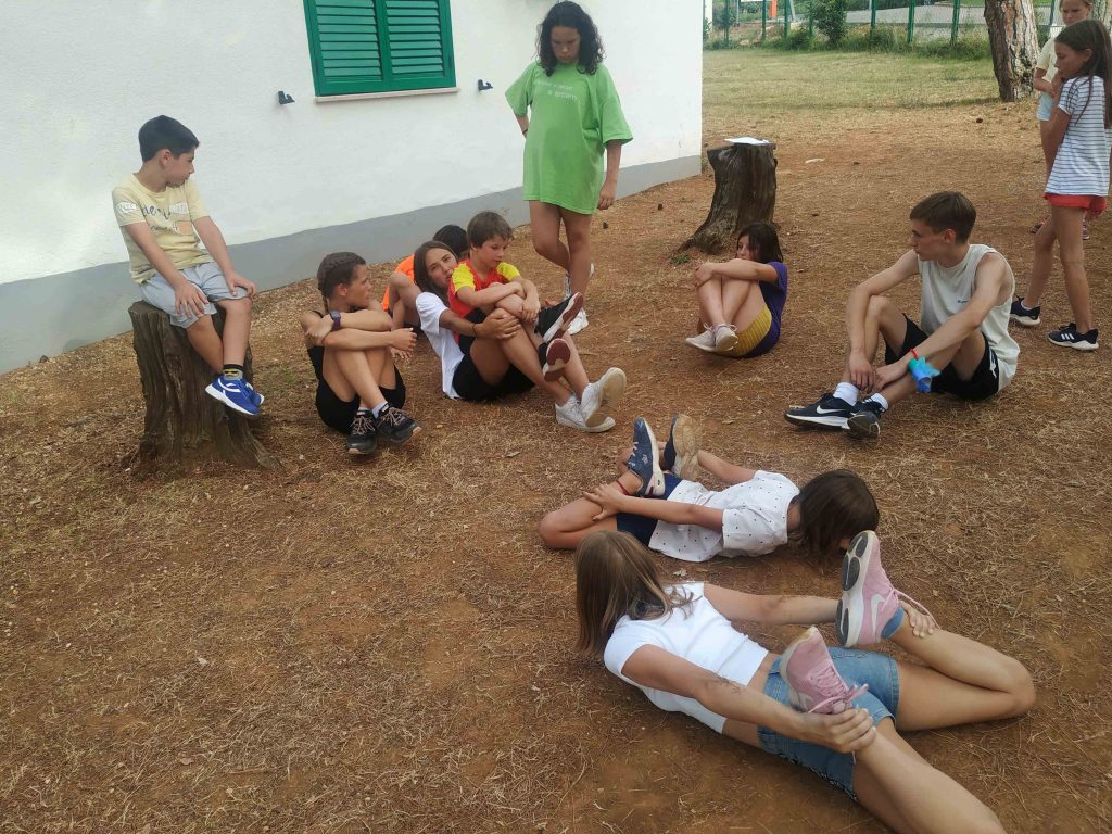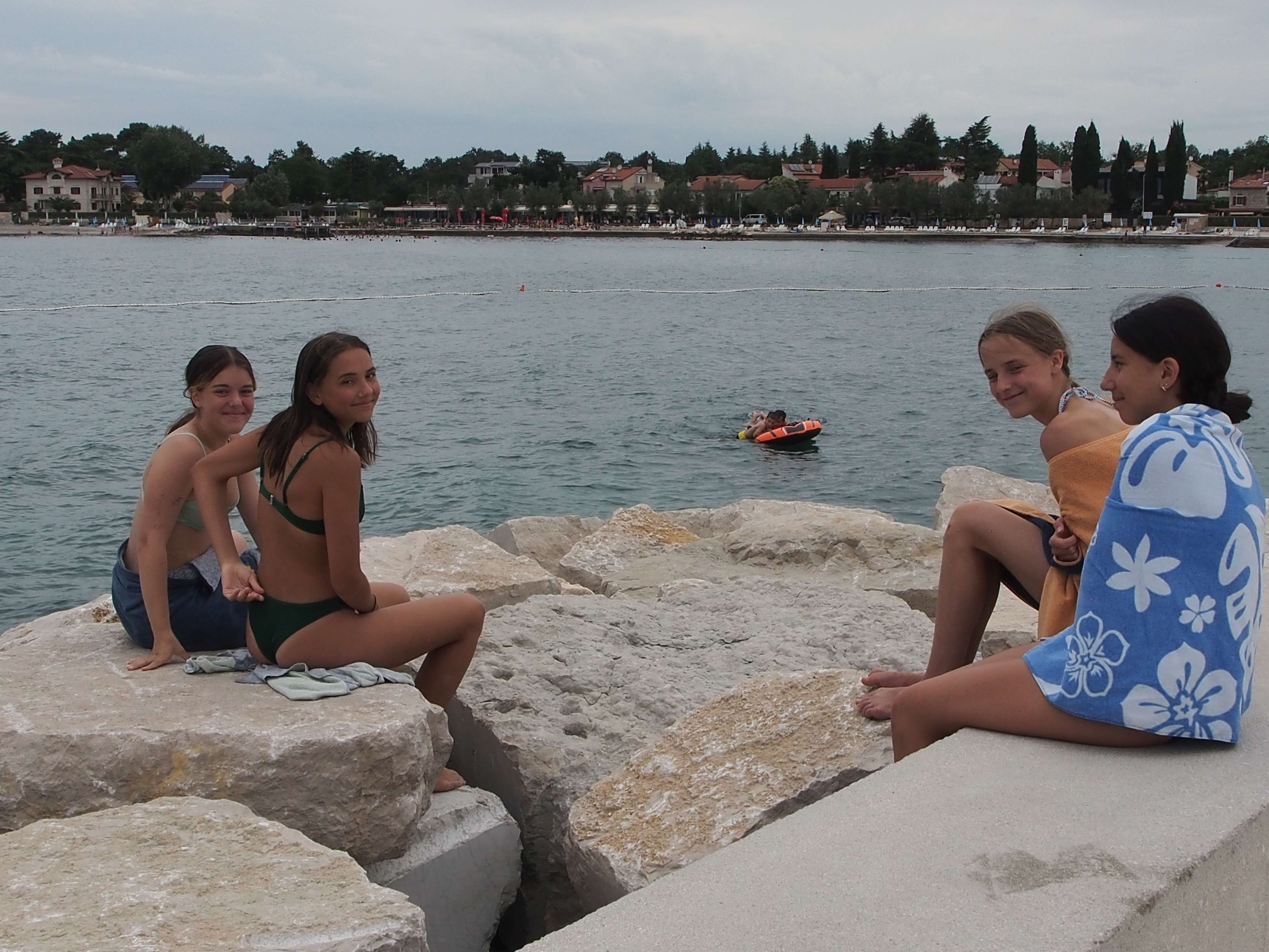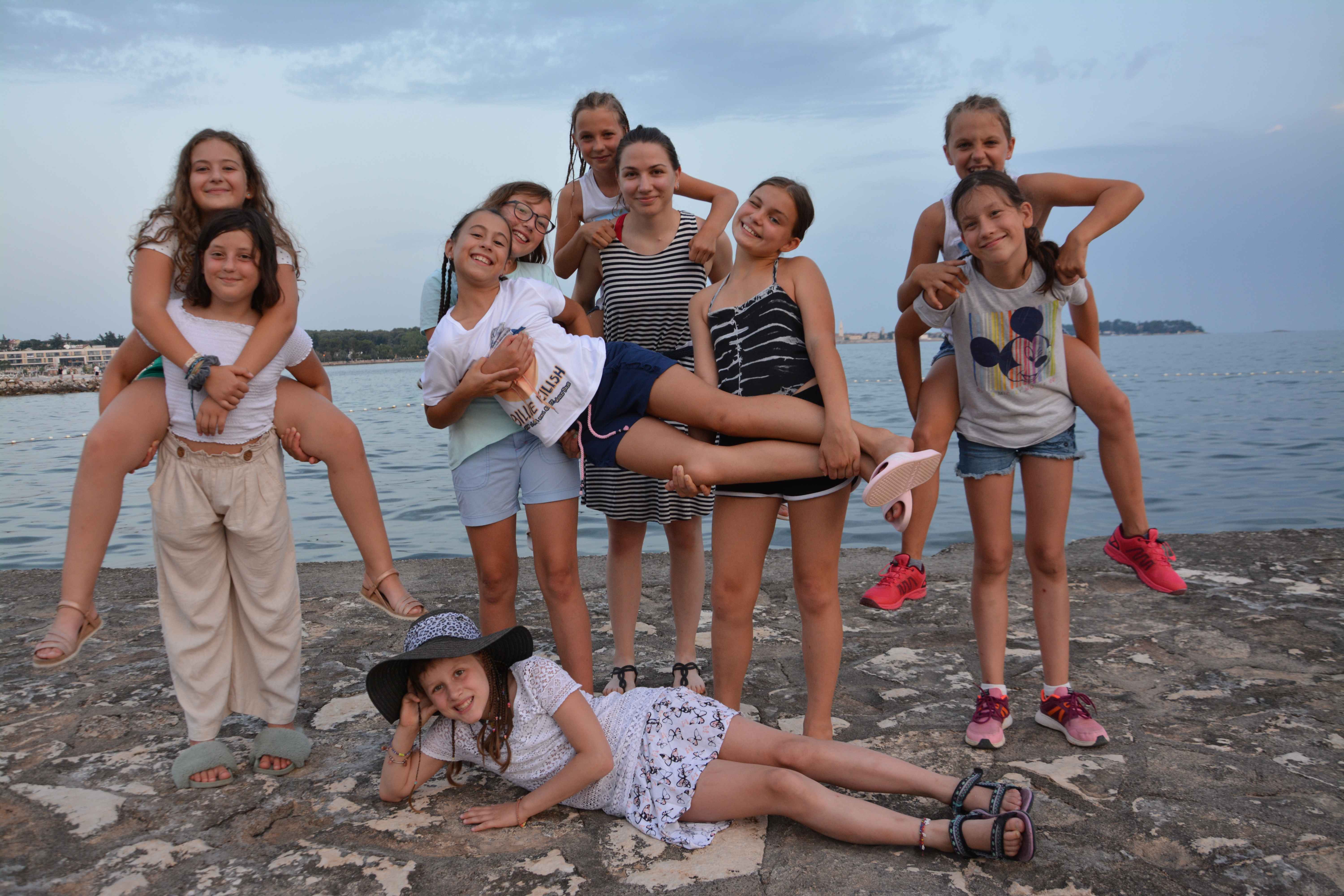 Kako dnevi hitro bežijo, saj smo že čez polovico našega letovanja. Kot običajno smo se zjutraj prebudili, se odpravili na telovadbo in po telovadbi na zajtrk. Sledilo je pospravljanje sob, ocenjevanje in odhod na plažo. Starejši otroci so ponovno veliko igrali odbojko, nekateri pa so se pod budnim očesom učitelja Erina preizkusili v »akrobatskih« spretnostih. Tisti najmlajši, ki jim še malo manjka, da postanejo čisto pravi plavalci so imeli plavalni tečaj, ostali pa so raziskovali morsko dno in čofotali po vodi.