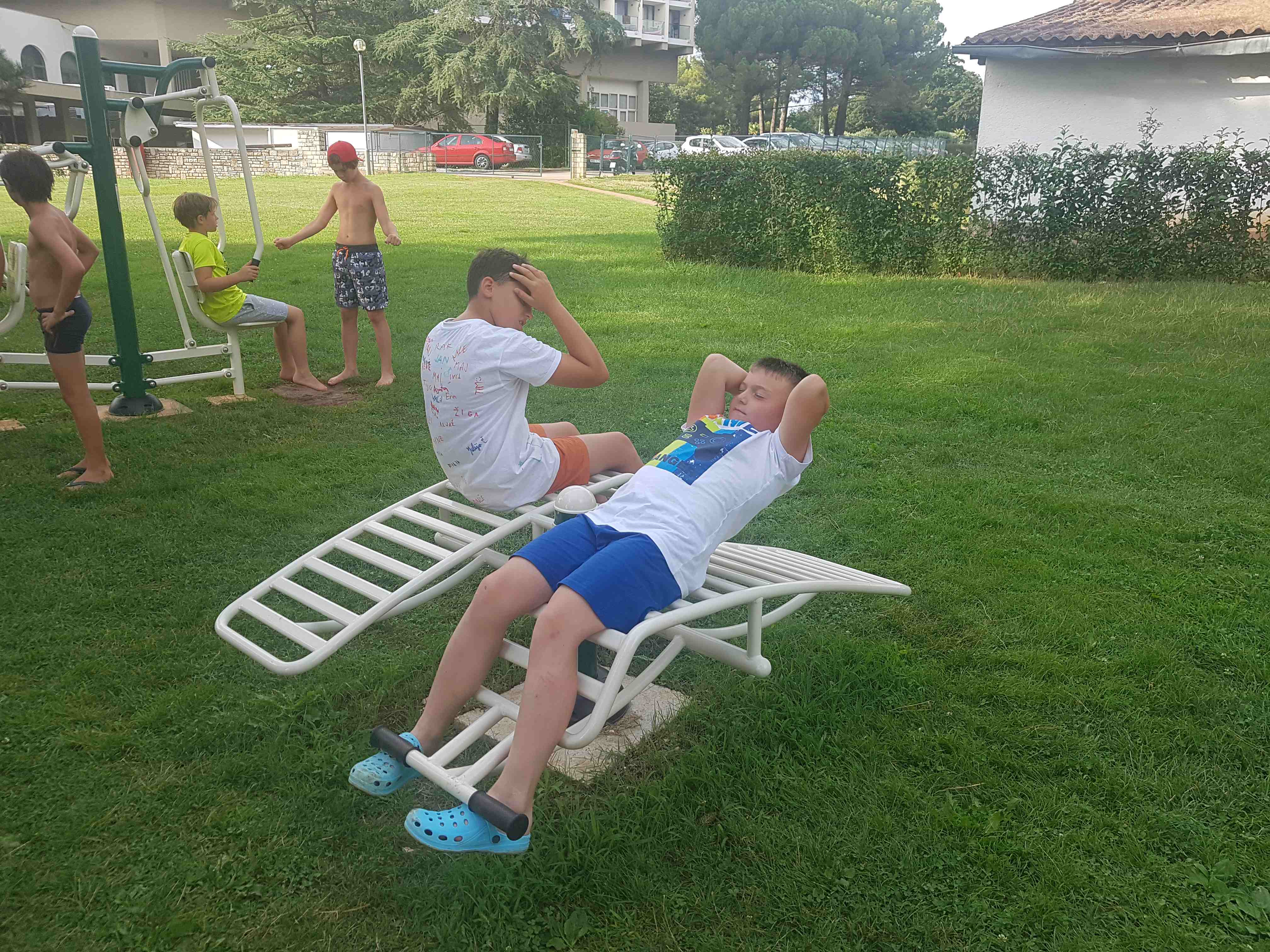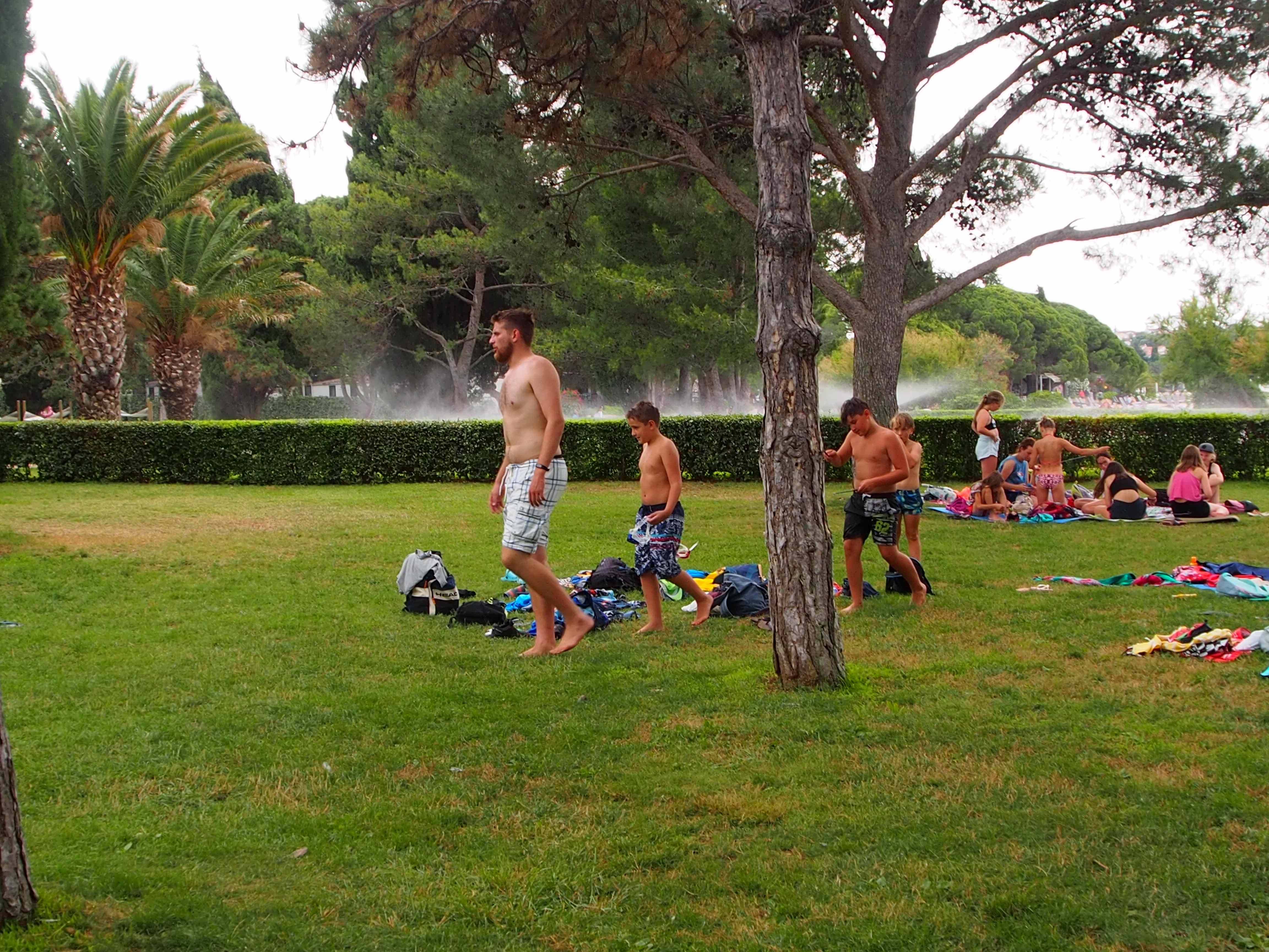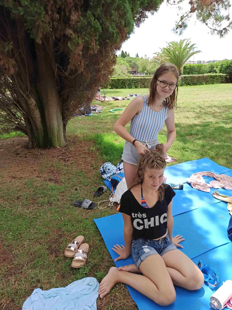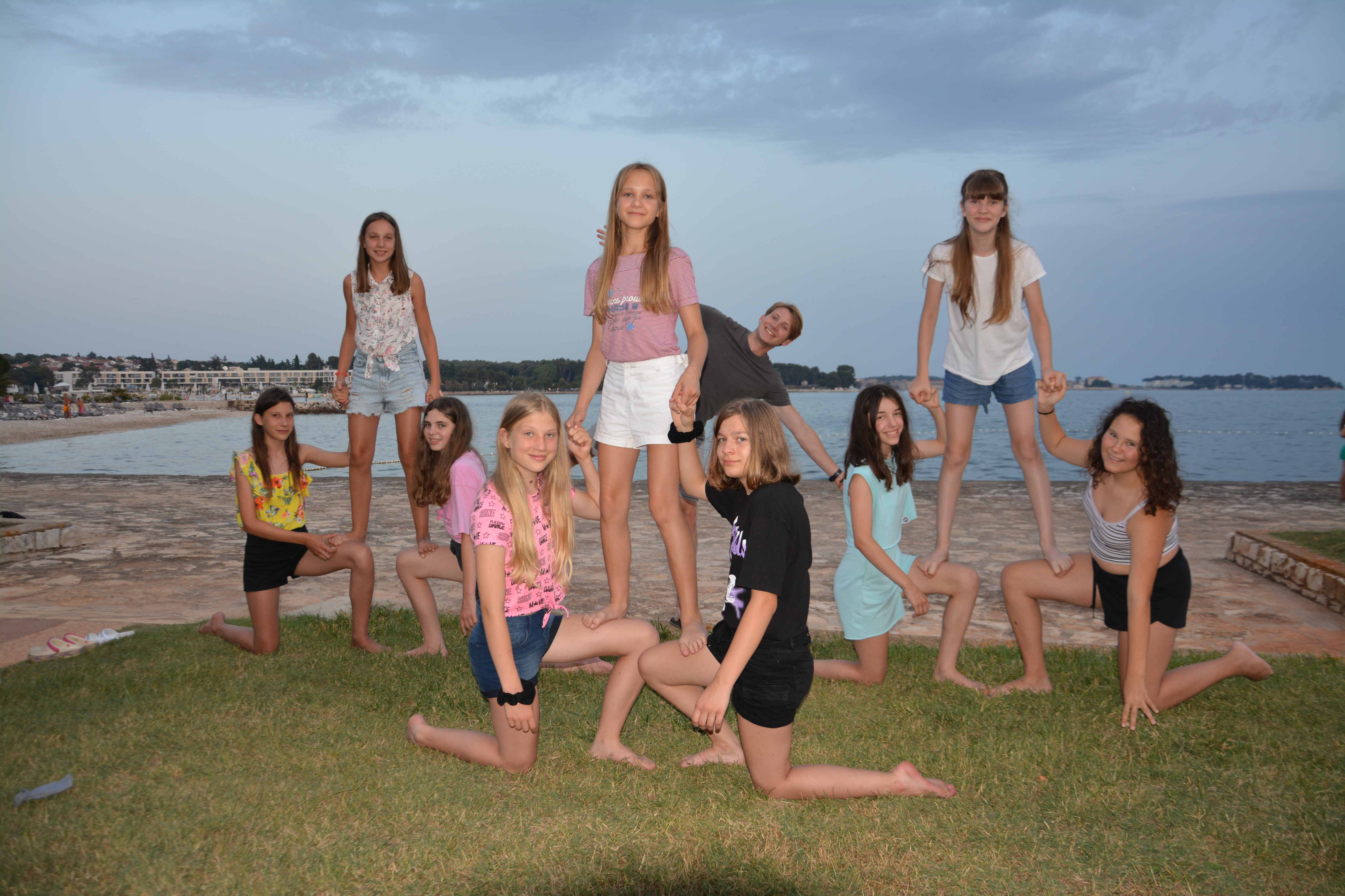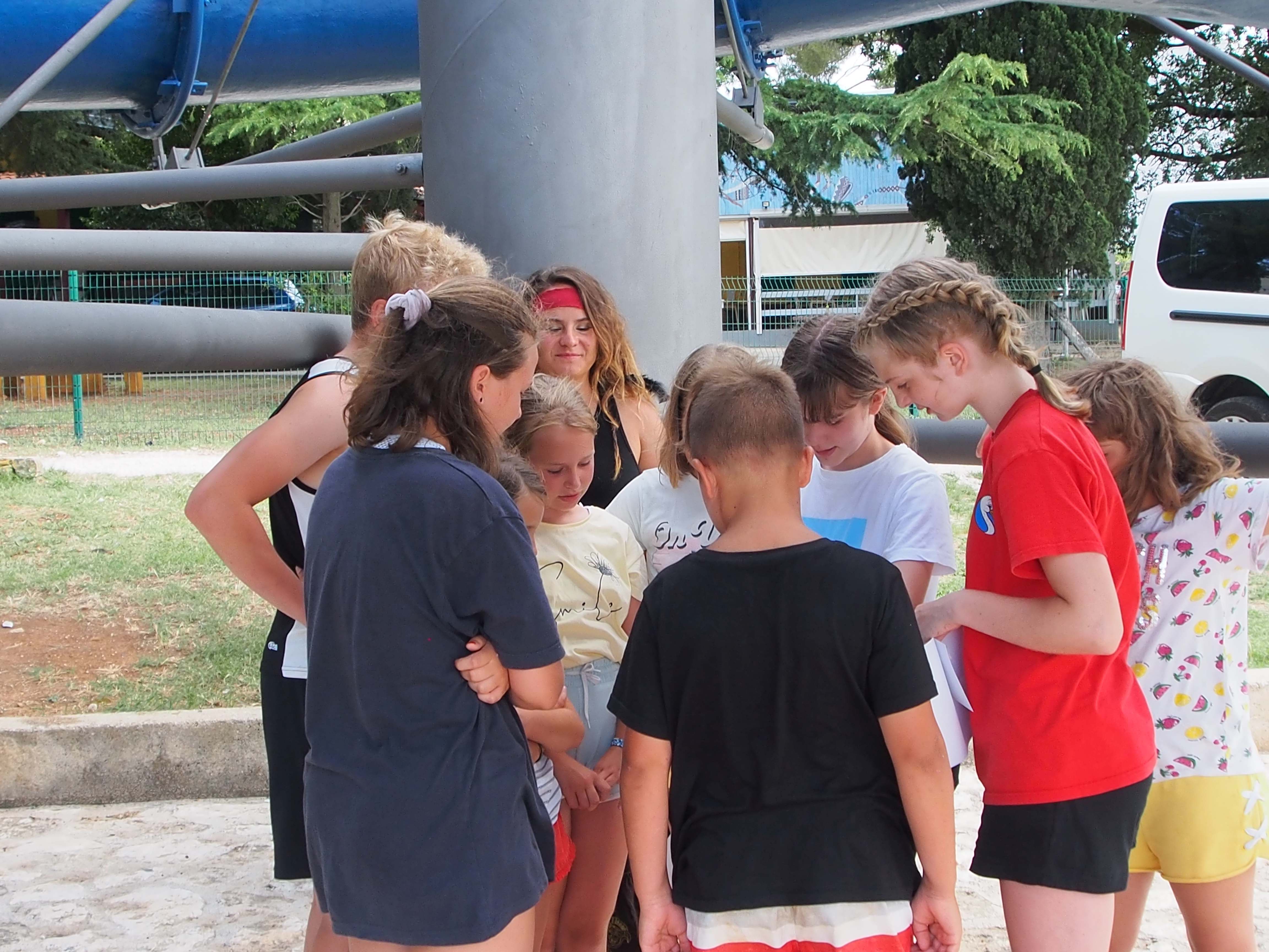 Kako dnevi hitro bežijo, saj smo že čez polovico našega letovanja. Kot običajno smo se zjutraj prebudili, se odpravili na telovadbo in po telovadbi na zajtrk. Sledilo je pospravljanje sob, ocenjevanje in odhod na plažo. Starejši otroci so ponovno veliko igrali odbojko, nekateri pa so se pod budnim očesom učitelja Erina preizkusili v »akrobatskih« spretnostih. Tisti najmlajši, ki jim še malo manjka, da postanejo čisto pravi plavalci so imeli plavalni tečaj, ostali pa so raziskovali morsko dno in čofotali po vodi.
