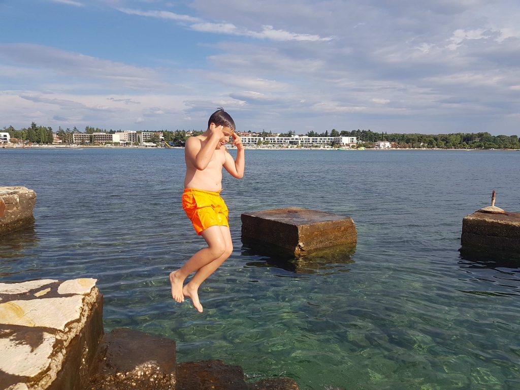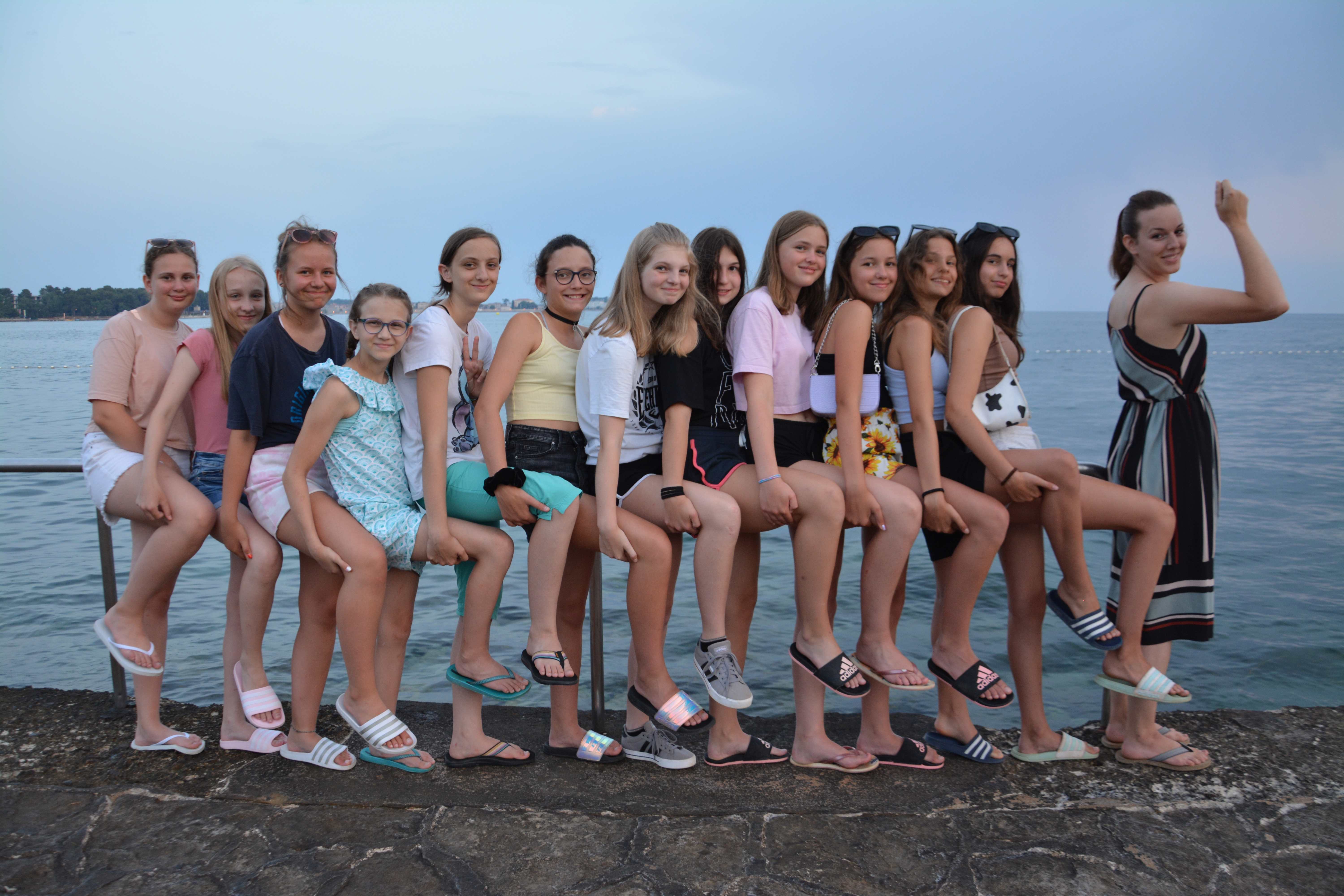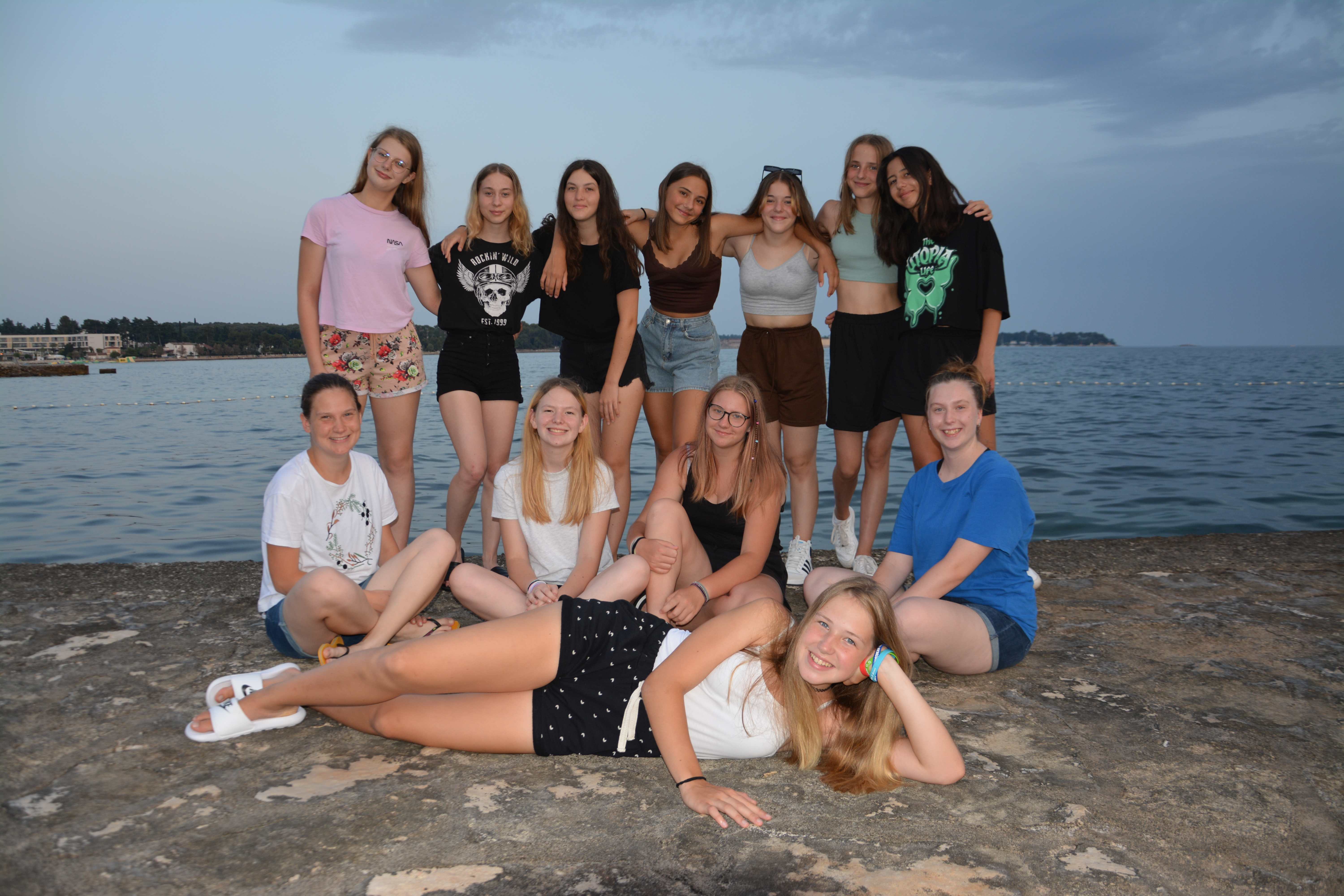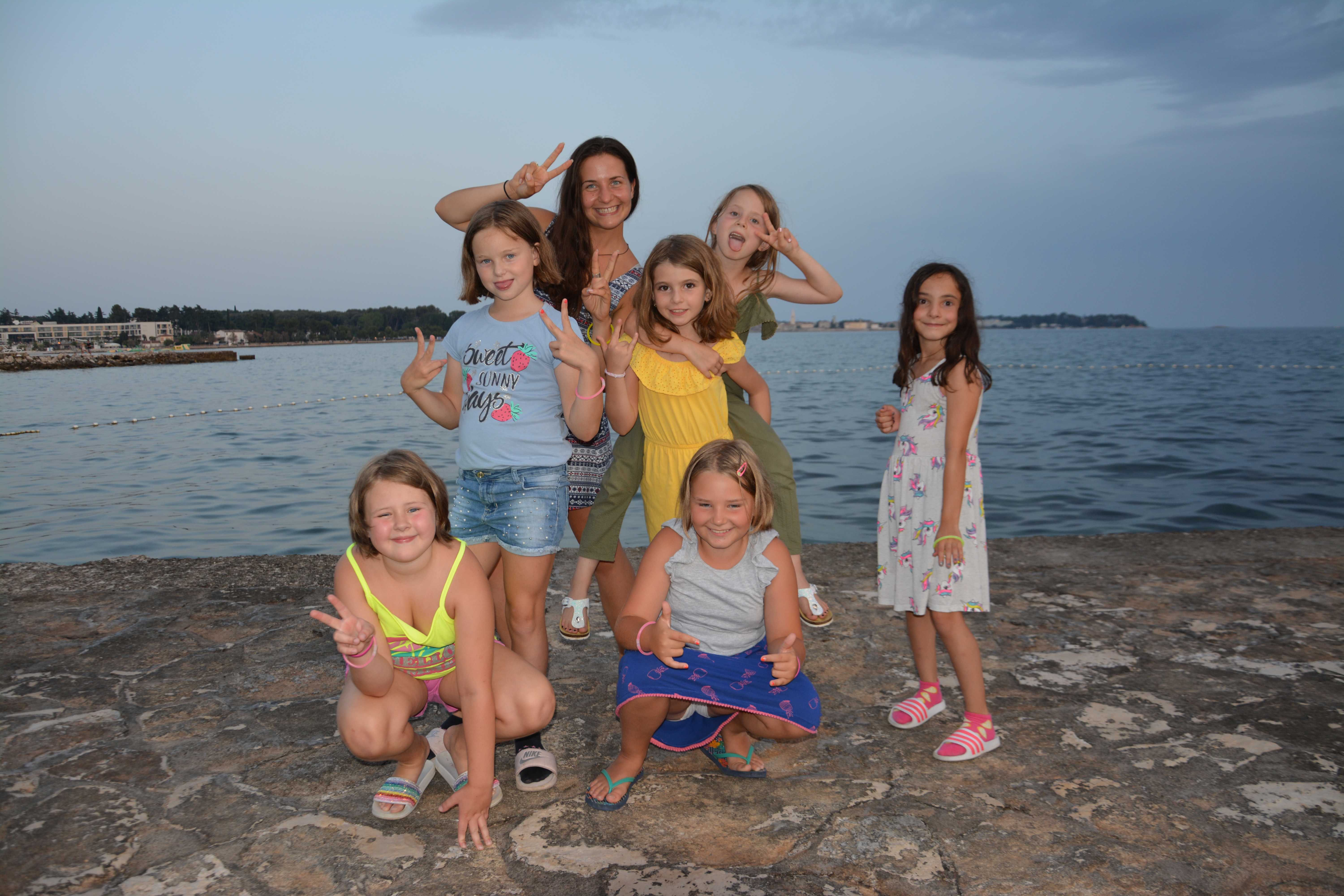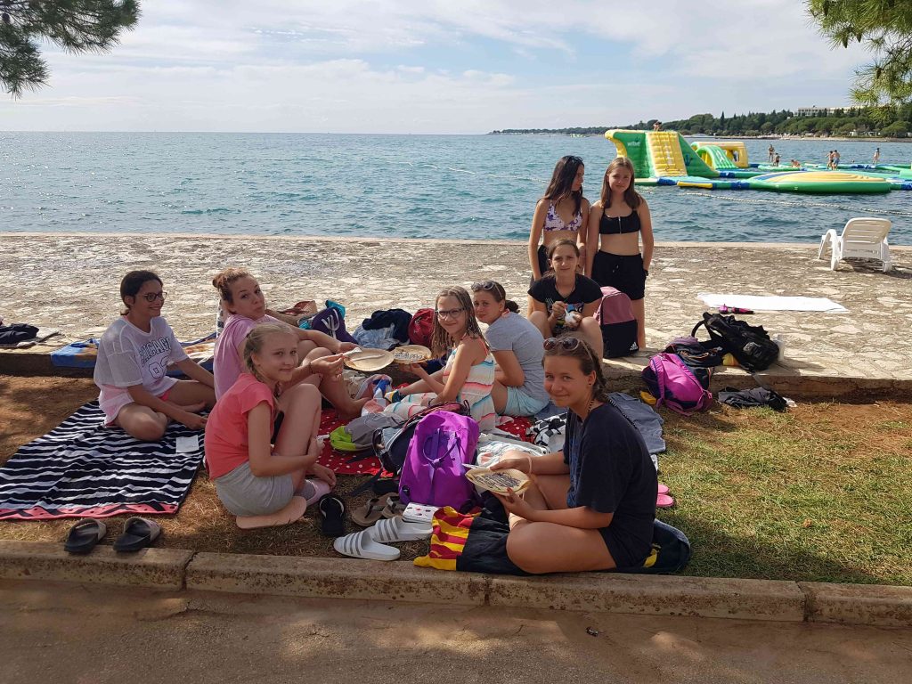 Prvi dan letovanja je za nami. Pot iz Idrije do Poreča je potekala gladko in brez zapletov. S krajšim postankom na počivališču smo v Špadiće prispeli ob 12. uri. Malo smo še morali počakati in že je bilo na vrsti slastno kosilo. Ko smo napolnili želodčke smo se namestili v sobe, se dogovorili o imenih sob in pripravili plakate, ki krasijo naše oglasne deske pred vrati. Po popoldanski malici smo se odpravili na plažo kjer smo najprej opravili preizkus plavanja. Nato smo še nekaj časa čofotali in se zabavali v vodi in že je prišel čas za večerjo. Po večerji smo se sprehodili do Materade in se spoznavali po skupinah. Sledilo je še slikanje skupin in sladoled pri Johnniju. Ker smo bili vsi že zelo utrujeni smo se nato odpravili nazaj v dom in se pripravili na spanje, prebrali smo še pravljico in zaspali.
