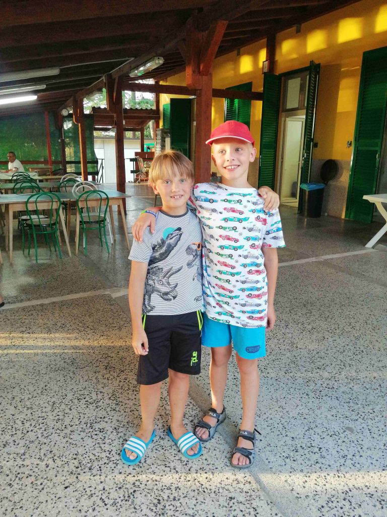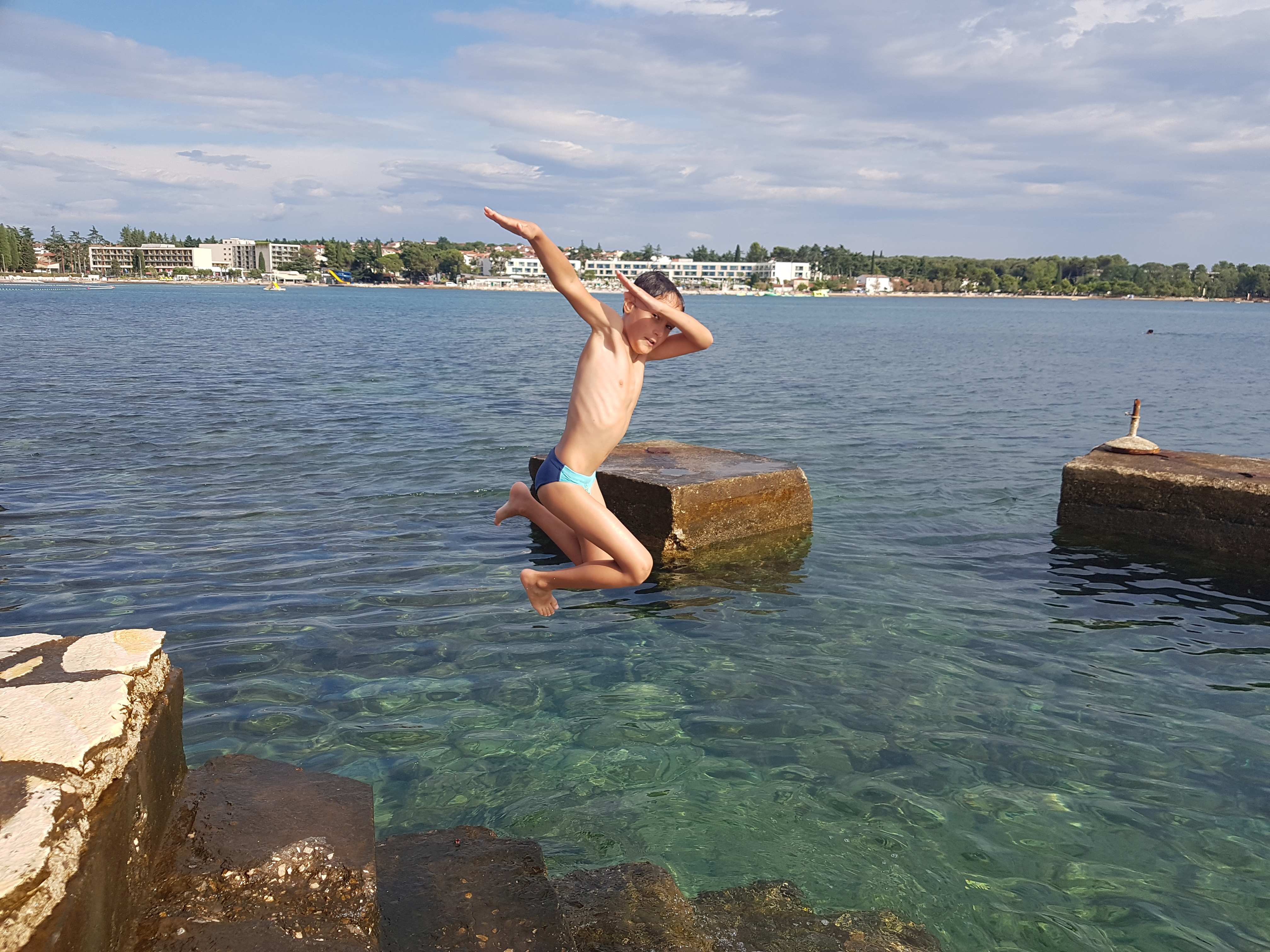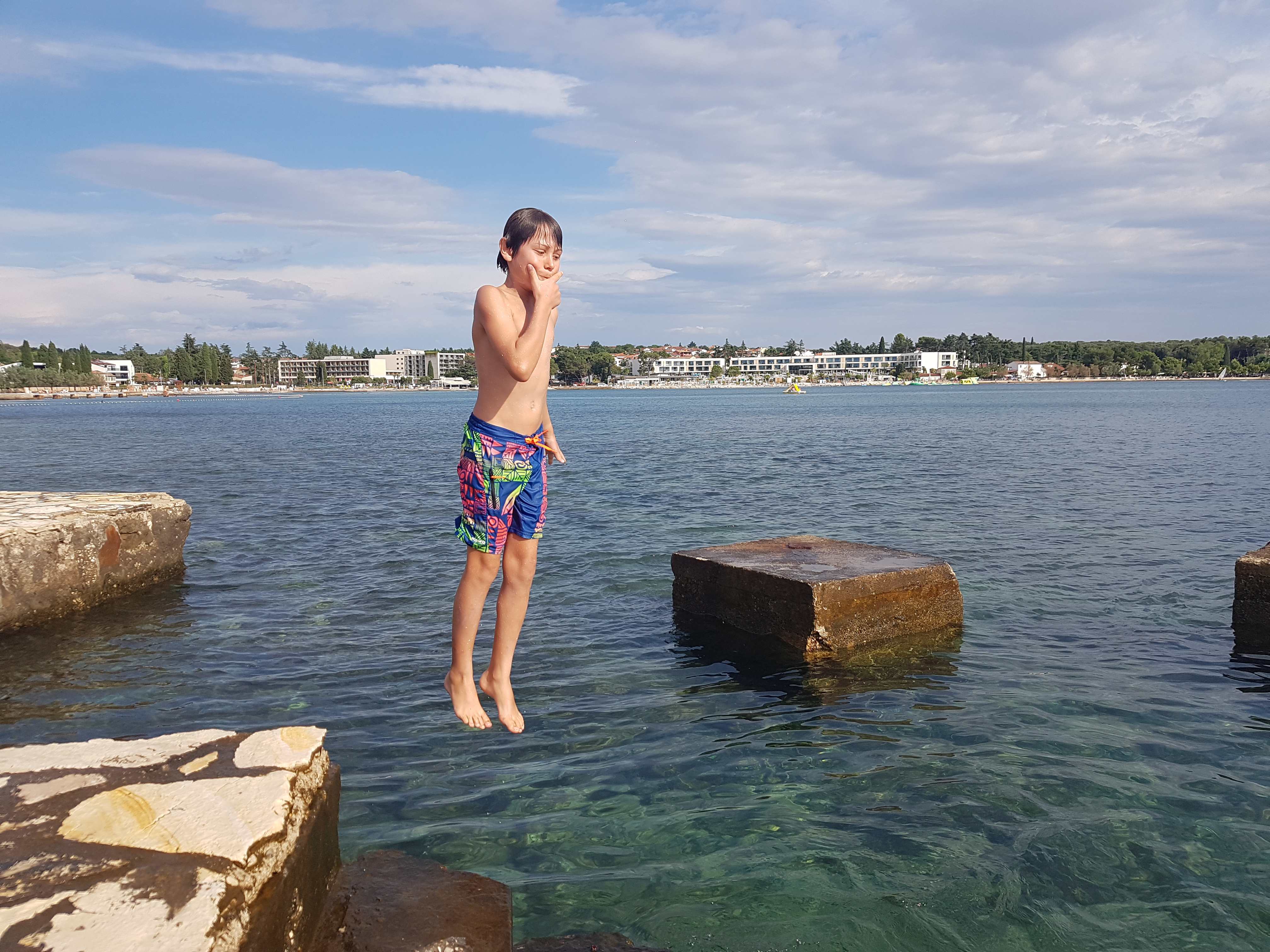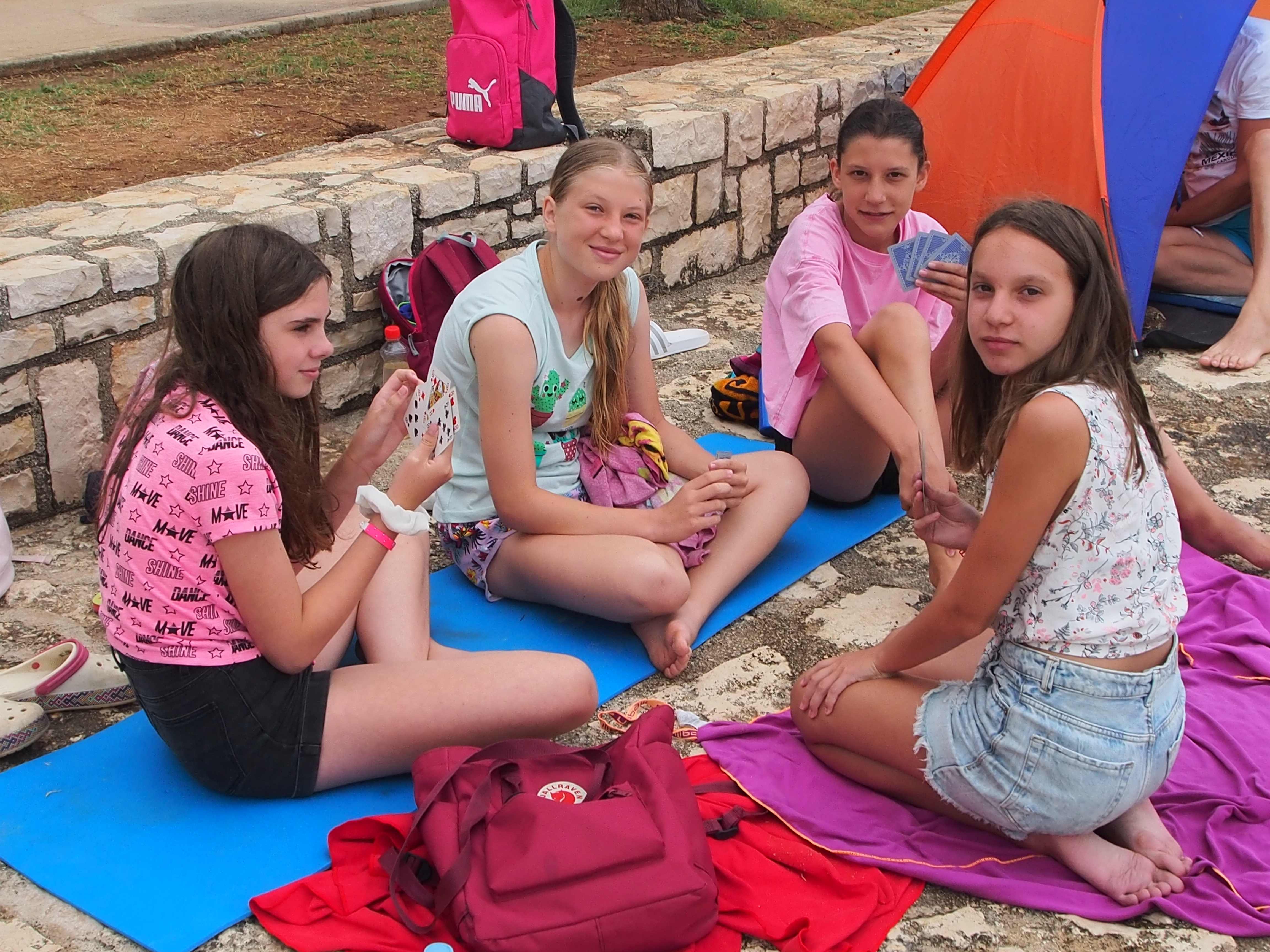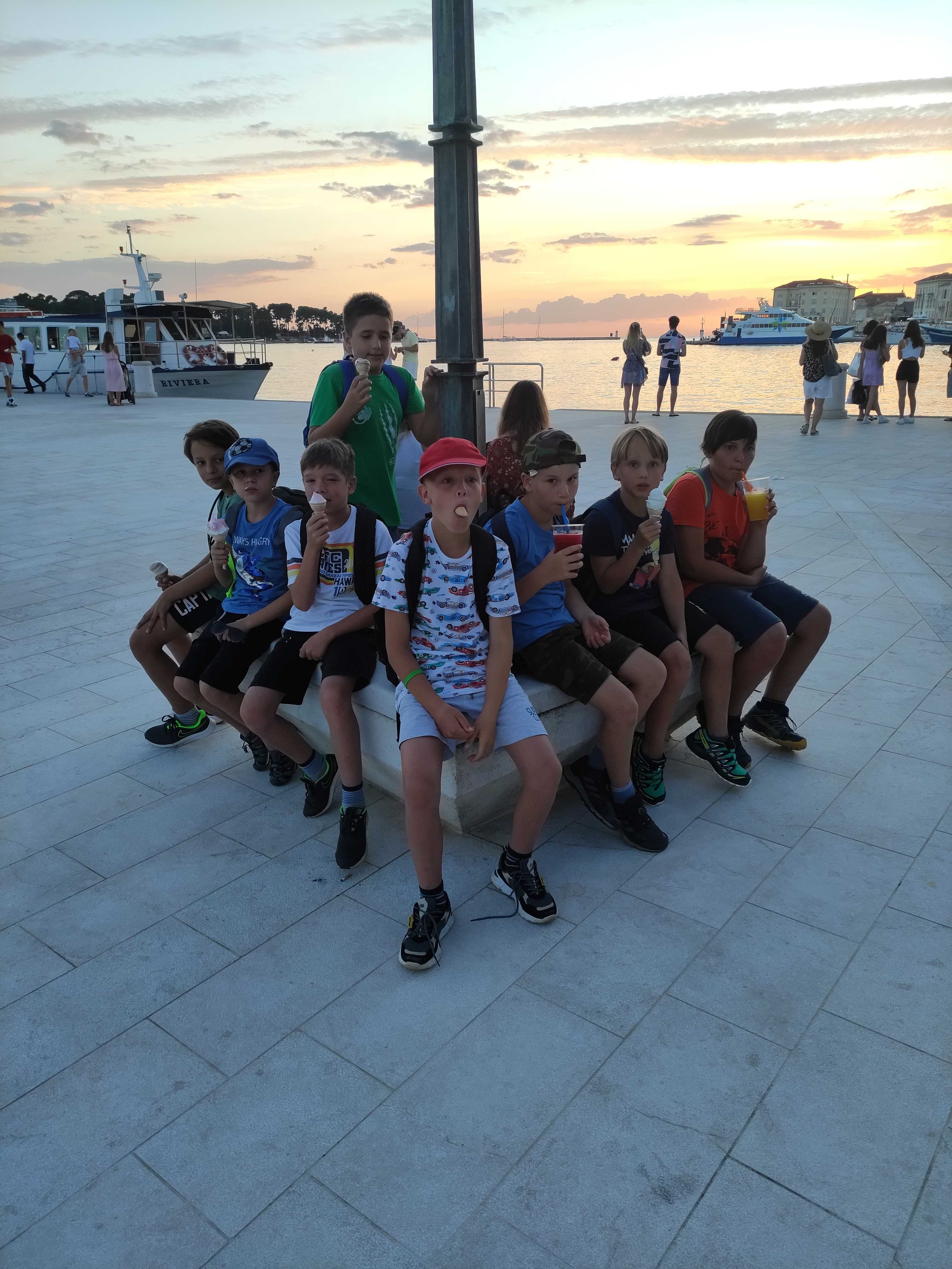 Prvi dan letovanja je za nami. Pot iz Idrije do Poreča je potekala gladko in brez zapletov. S krajšim postankom na počivališču smo v Špadiće prispeli ob 12. uri. Malo smo še morali počakati in že je bilo na vrsti slastno kosilo. Ko smo napolnili želodčke smo se namestili v sobe, se dogovorili o imenih sob in pripravili plakate, ki krasijo naše oglasne deske pred vrati. Po popoldanski malici smo se odpravili na plažo kjer smo najprej opravili preizkus plavanja. Nato smo še nekaj časa čofotali in se zabavali v vodi in že je prišel čas za večerjo. Po večerji smo se sprehodili do Materade in se spoznavali po skupinah. Sledilo je še slikanje skupin in sladoled pri Johnniju. Ker smo bili vsi že zelo utrujeni smo se nato odpravili nazaj v dom in se pripravili na spanje, prebrali smo še pravljico in zaspali.