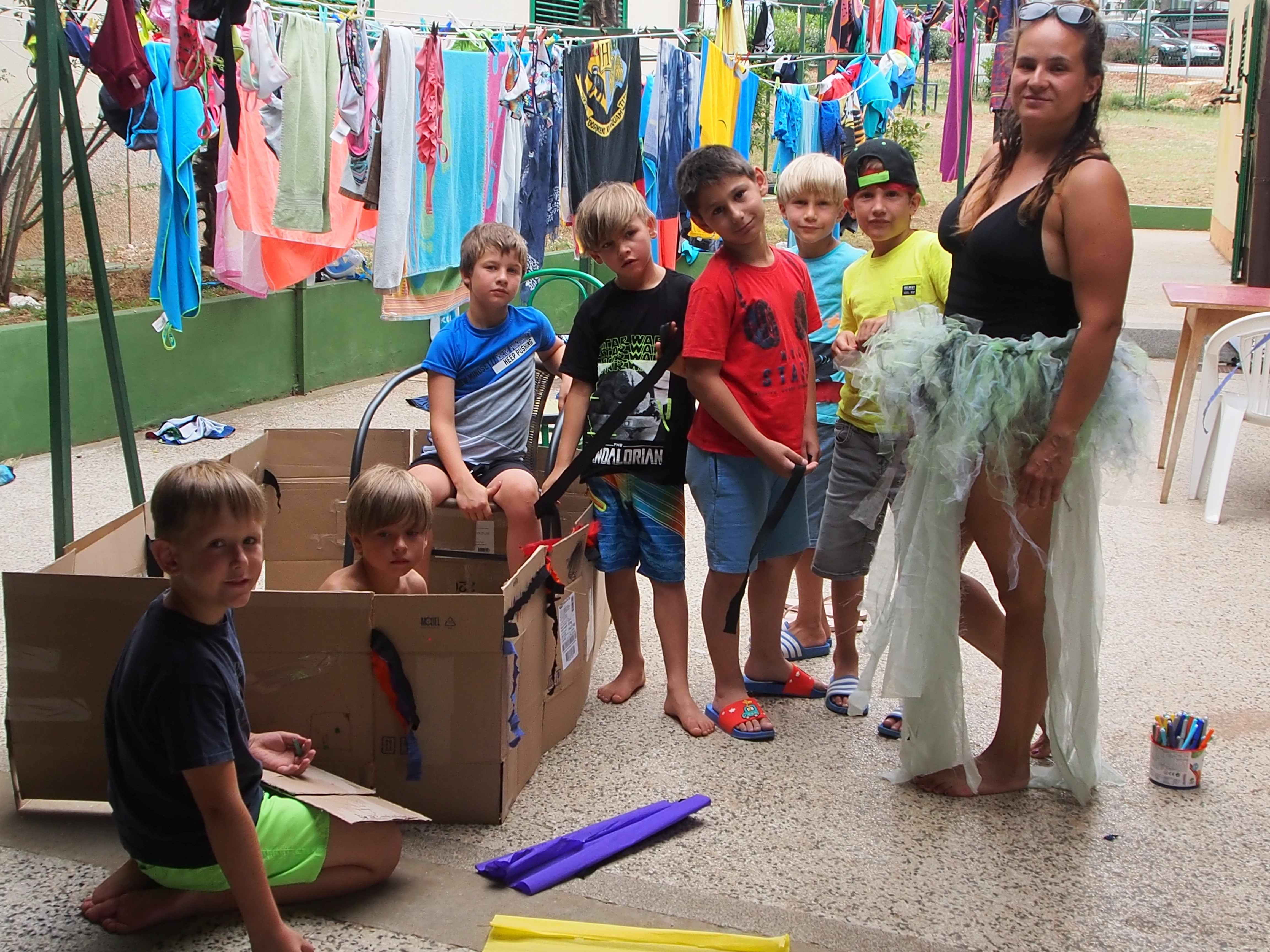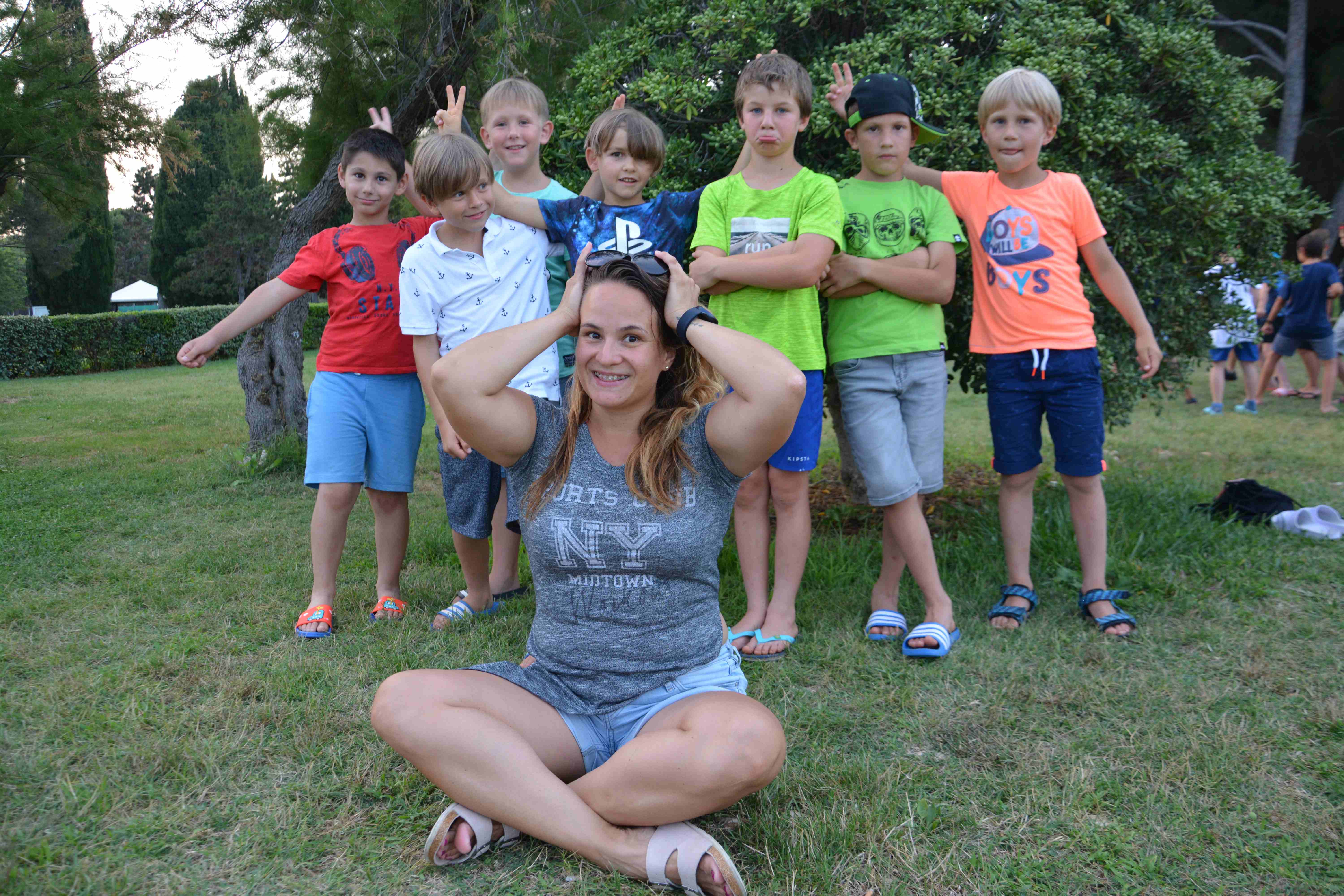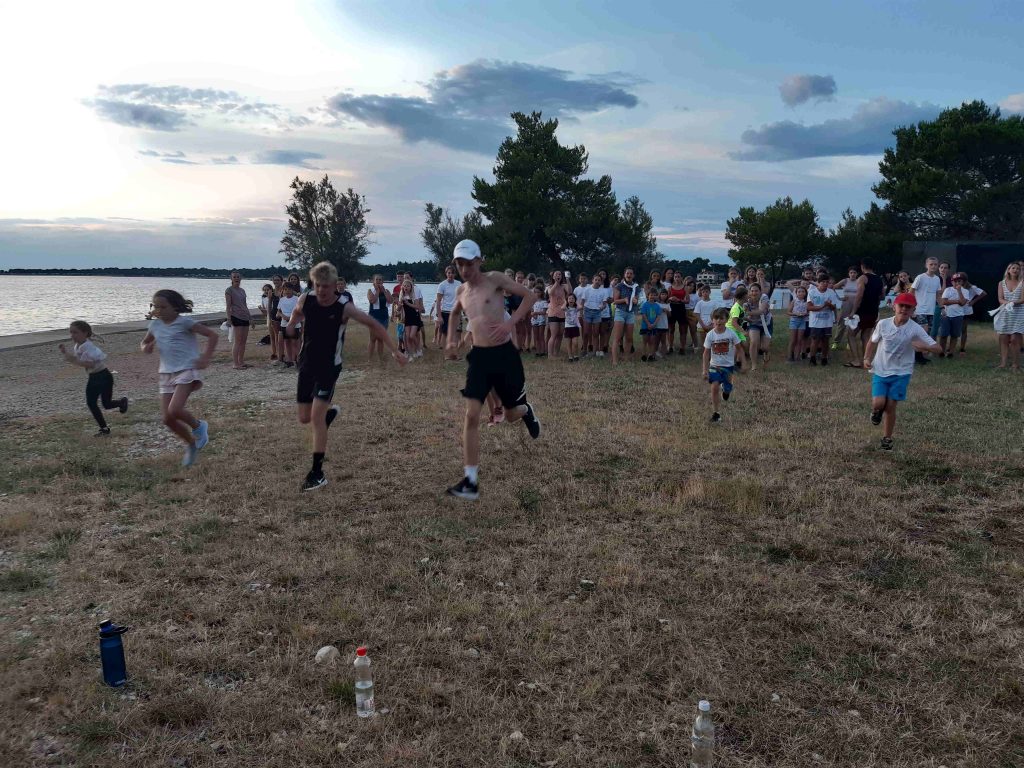 Vsi smo že komaj čakali, da se popoldne odpravimo na plažo. Mlajši otroci so bili na mivkasti plaži blizu doma, starejši otroci pa so se odpravili na Materado kjer so igrali odbojko in telovadili v fitnesu na prostem. Po večerji smo se odpravili do bližnjega travnika kjer so potekale zabavne štafetne igre. Za piko na i pa so otroci vzgojitelje oblečene odpeljali v morje ?