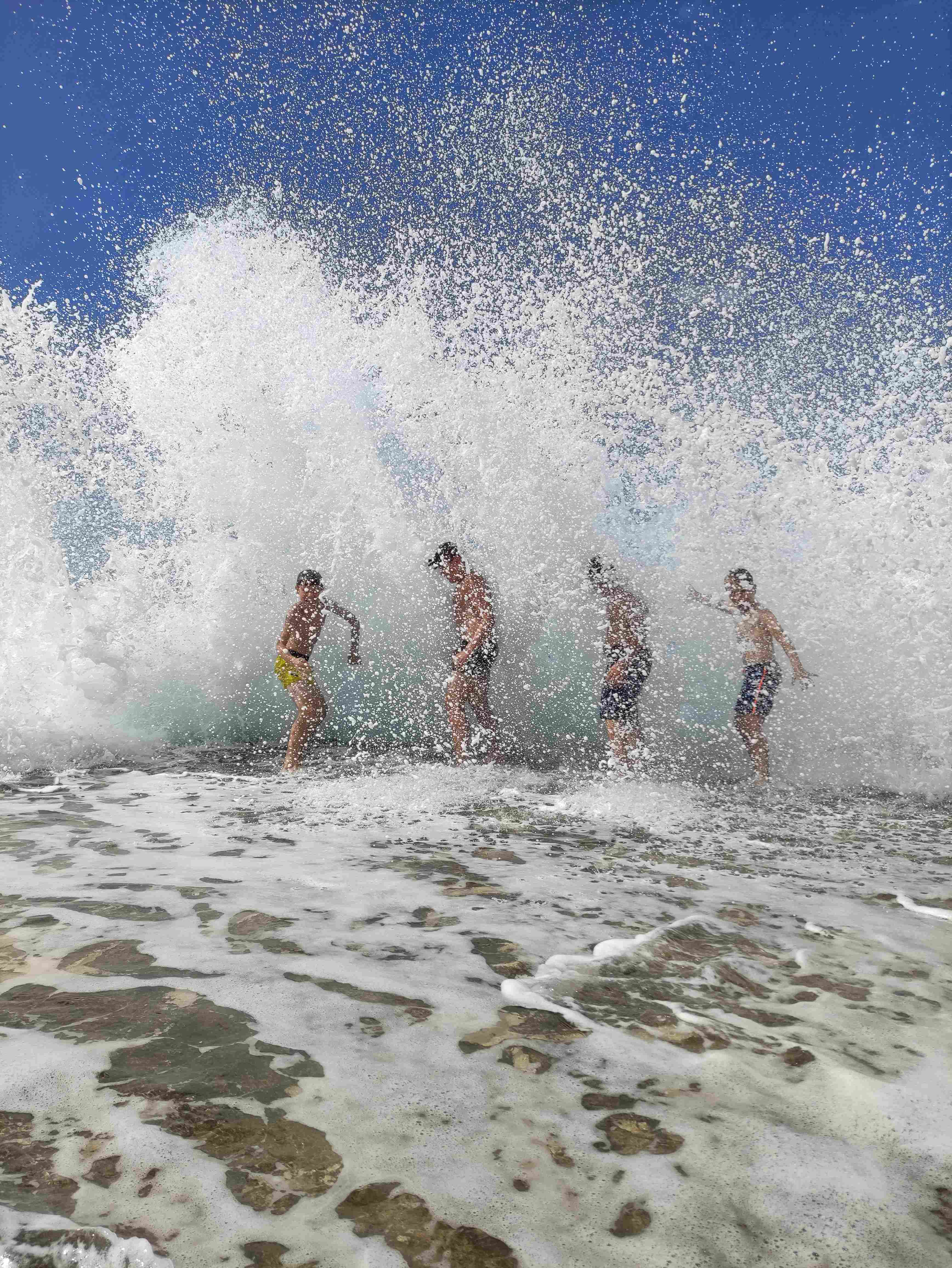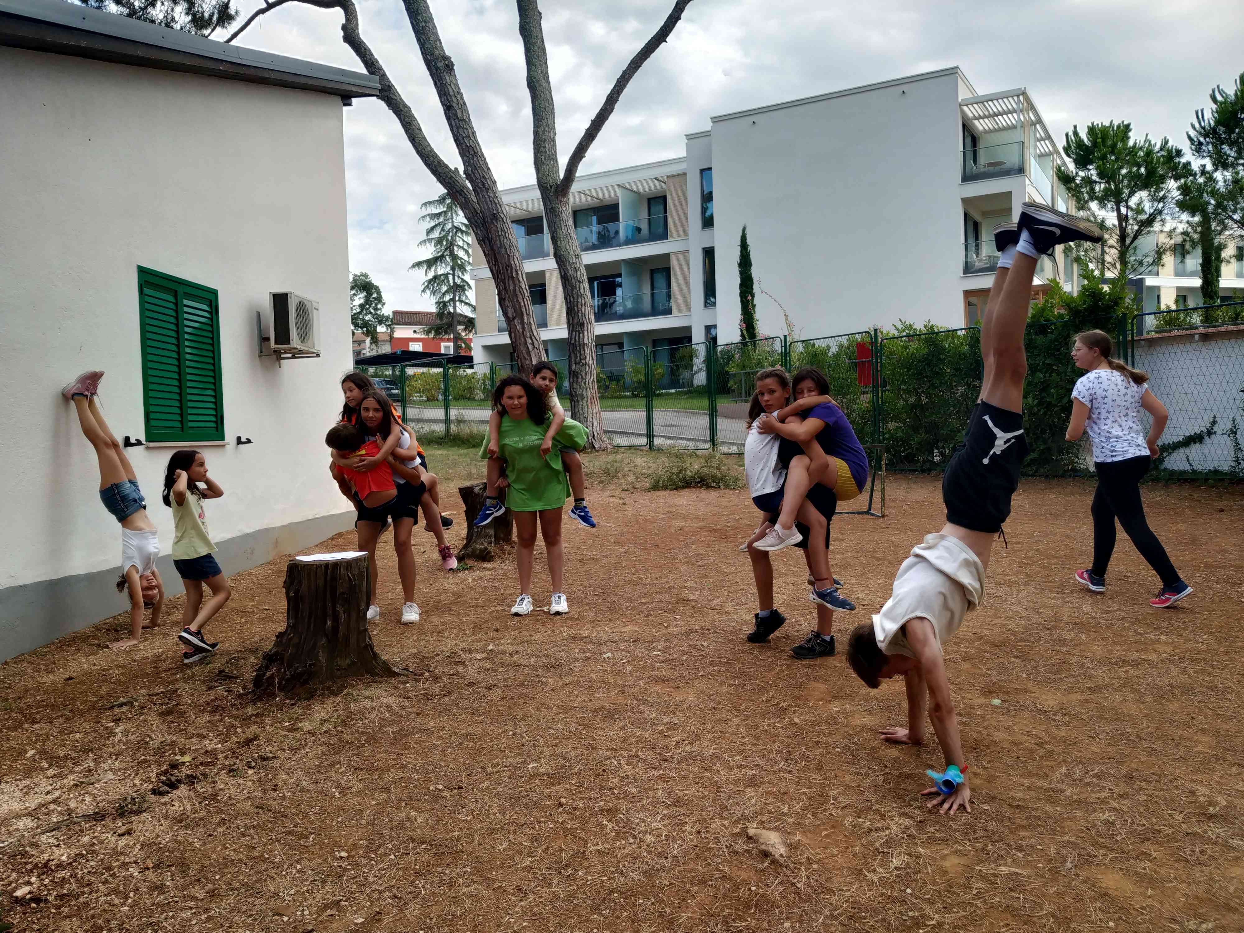 Nato smo se odpravili na plažo kjer so nas pričakali ogromni valovi. Ker v vodo zaradi varnosti nismo mogli, smo se zabavali na plaži ob špricanju valov. V senčki smo se urili v igri z diabolom, trenirali mišice, kartali in se igrali v peskovniku. Starejši otroci so se pomerili v odbojki. Dopoldne je hitro minilo in že smo se vrnili v dom na kosilo. Po kosilu počitek, po počitku smo izdelali razglednice, ki vam jih bomo poslali domov. Nejc nas je naučil nekaj novih cirkuških spretnosti, fantje pa so se pomerili v nogometu.