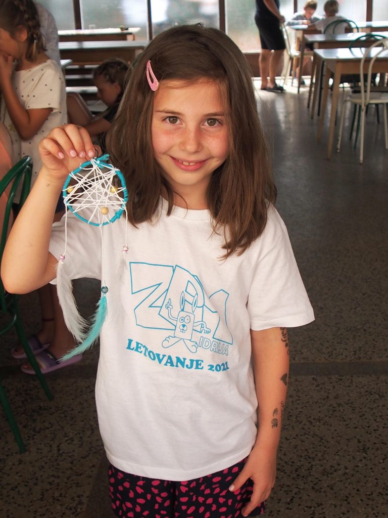 Zbudili smo se v deževno sobotno jutro. Dežne kapljice so počakale le toliko, da smo se razmigali na jutranji telovadbi. Ker zaradi dežja dopoldne nismo mogli na plažo so naše aktivnosti potekale v domu. Tekmovali smo v različnih družabnih igrah, ping pongu in balinčkih. Dopoldne je hitro minilo in že se je na nebu pokazalo sonce. Na popoldanskih ustvarjalnih delavnicah smo tokrat izdelovali lovilce sanj, nekateri pa so se igrali z diaboli in kitajskimi krožniki.