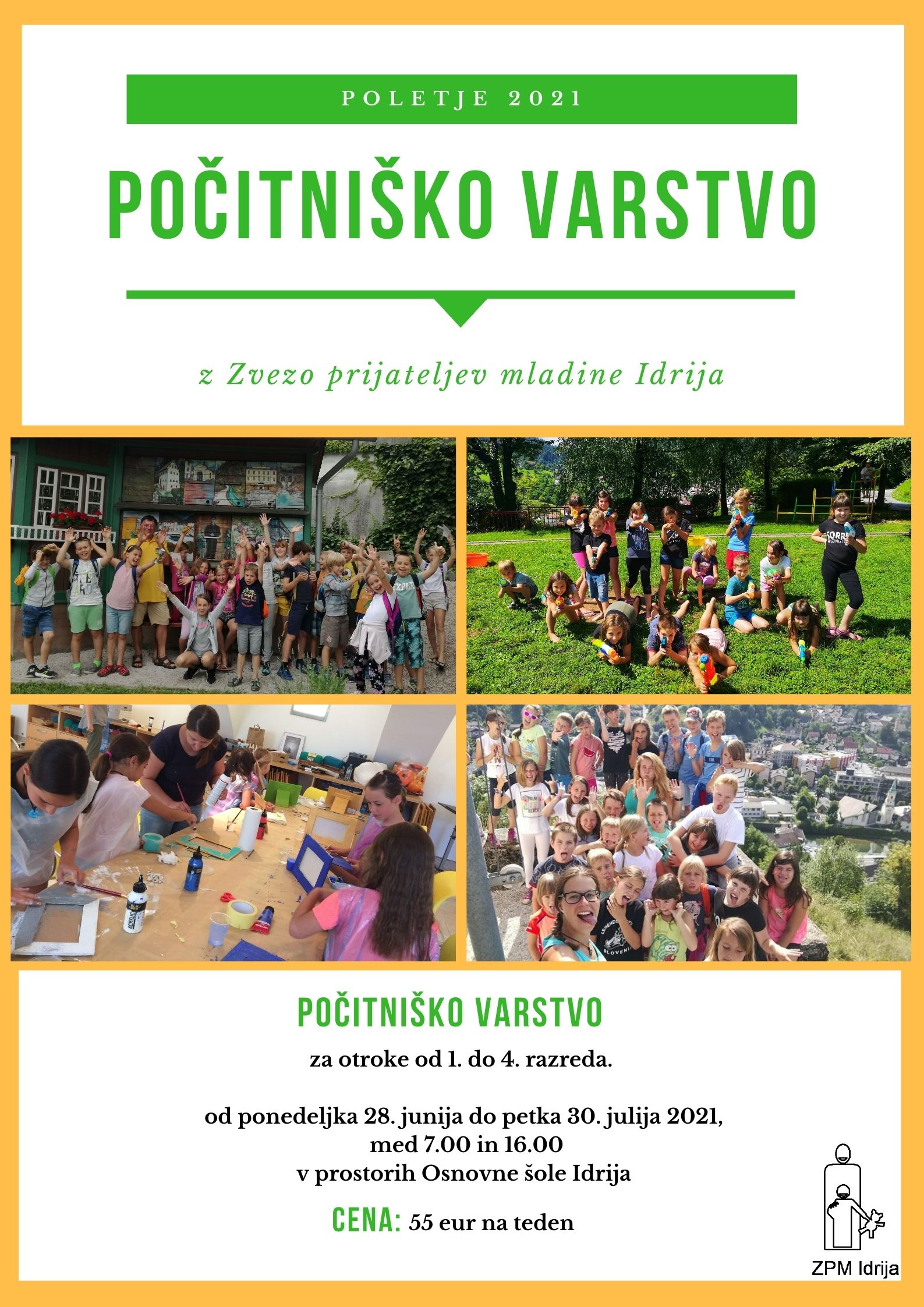 Varstvo bo potekalo v prostorih Osnovne šole Idrija od ponedeljka 28. junija do petka 30. julija 2021, med tednom od 7.00 do 16.00.